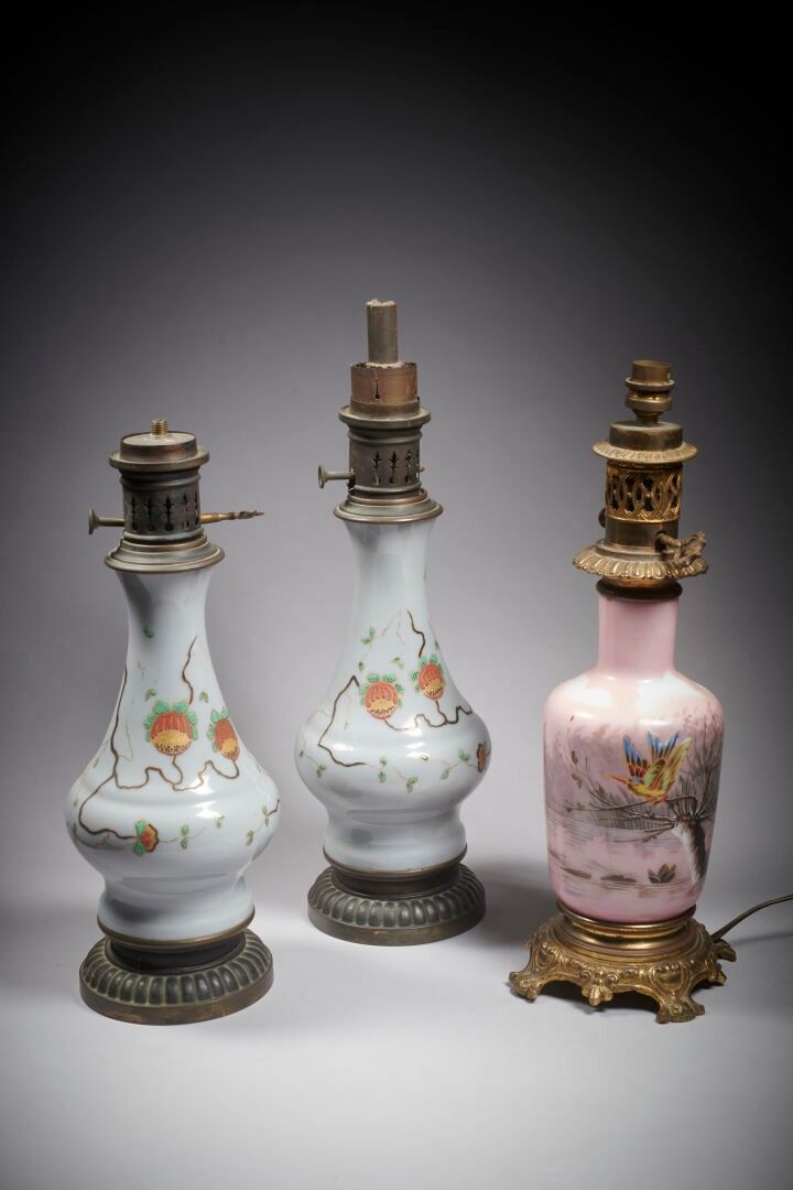 Pair of oil lamps In blue porcelain decorated with Japanese …