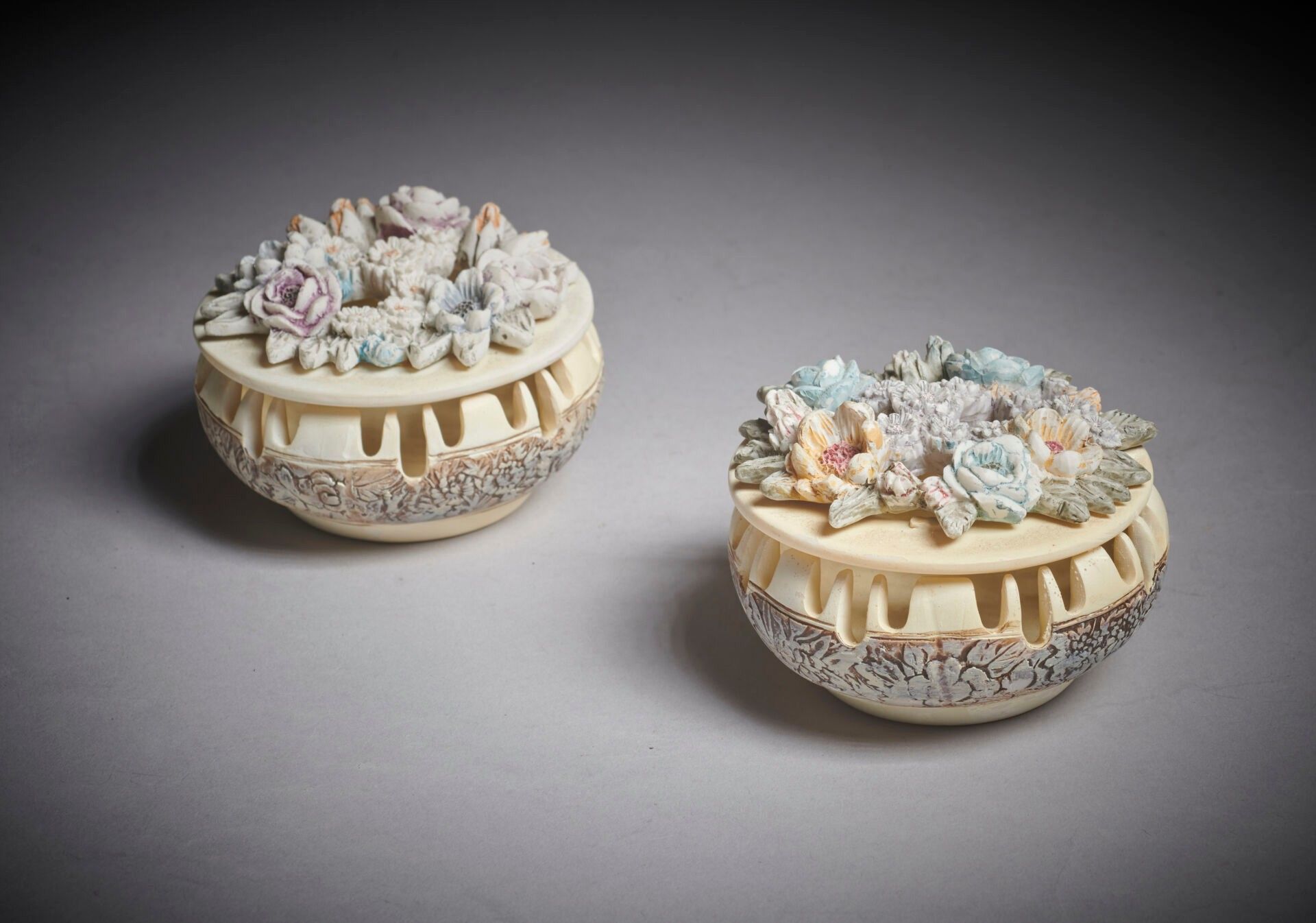 Set of two incense burners In resin decorated with a wreath …