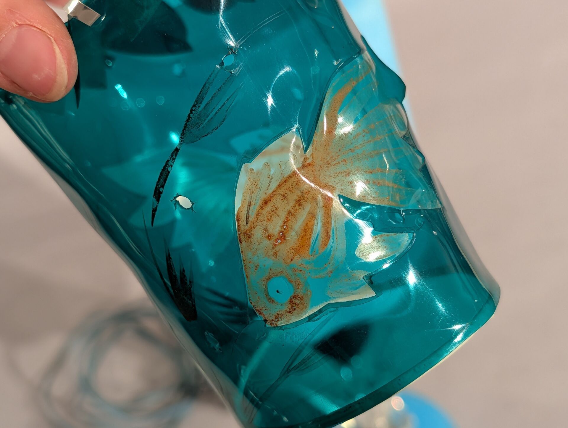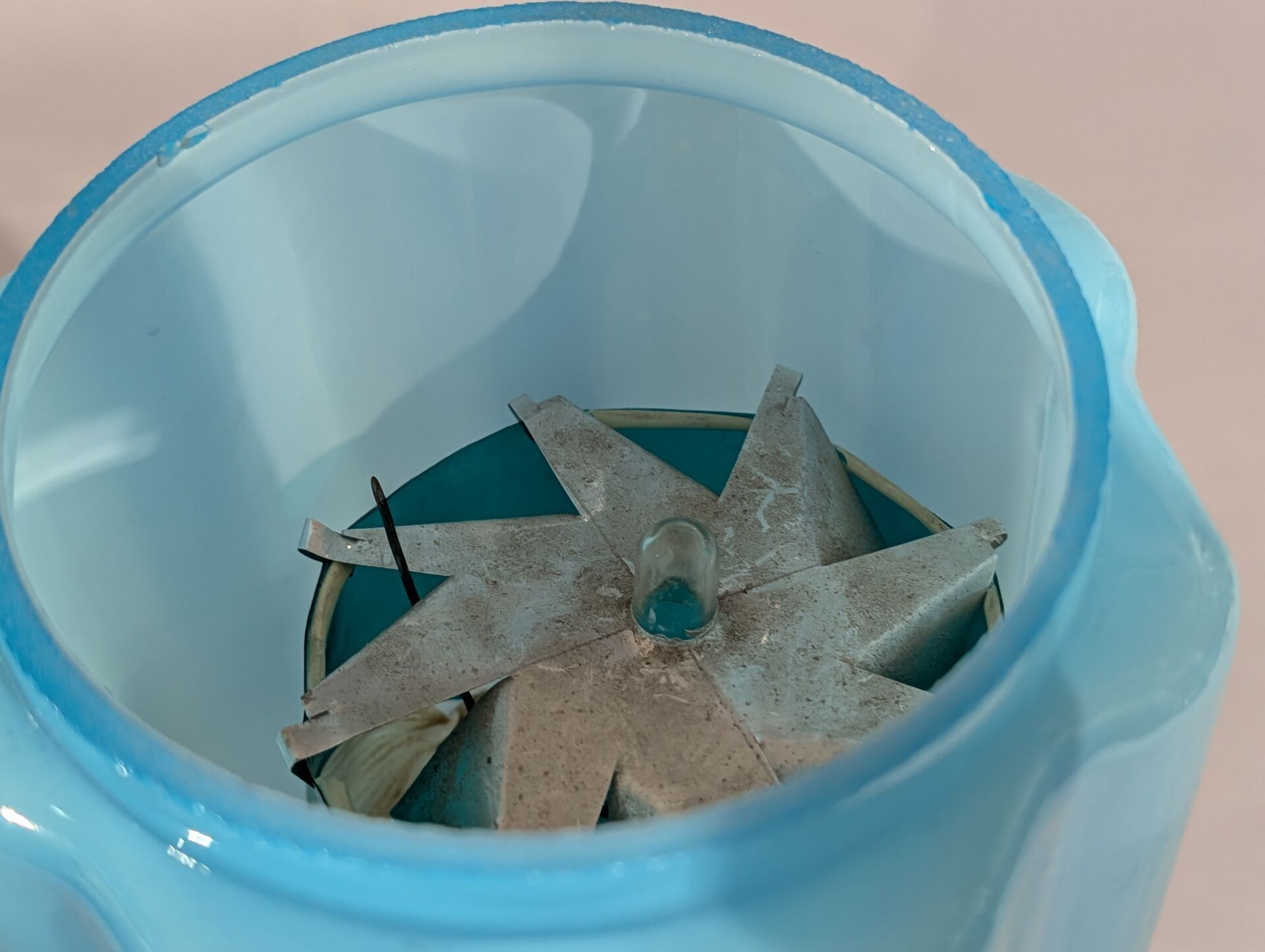 Lamp Blue opaline, the lampshade holding a mobile mechanism