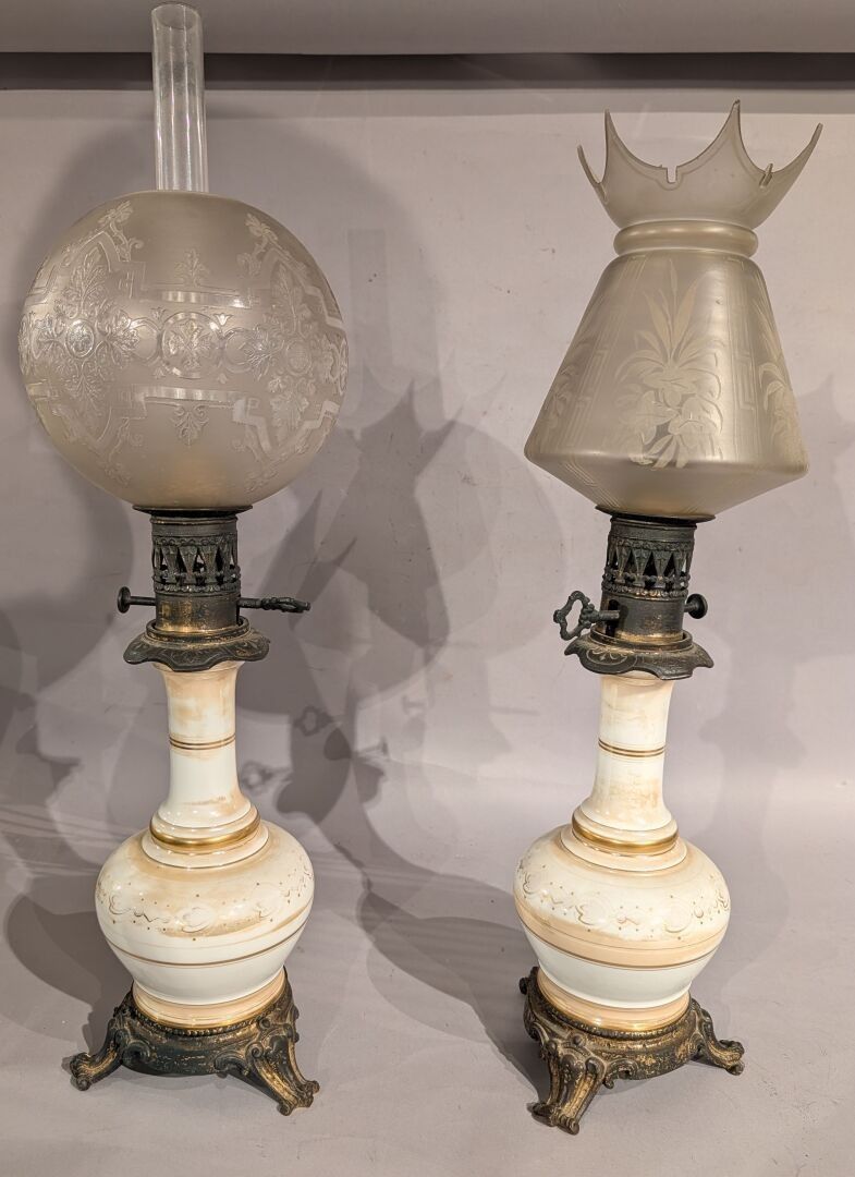 Pair of oil lamps In porcelain with champagne decoration on …