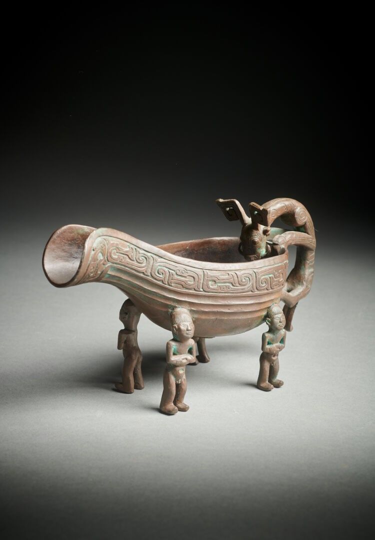 CHINA Ritual libation jug In bronze with a brown patina in t…