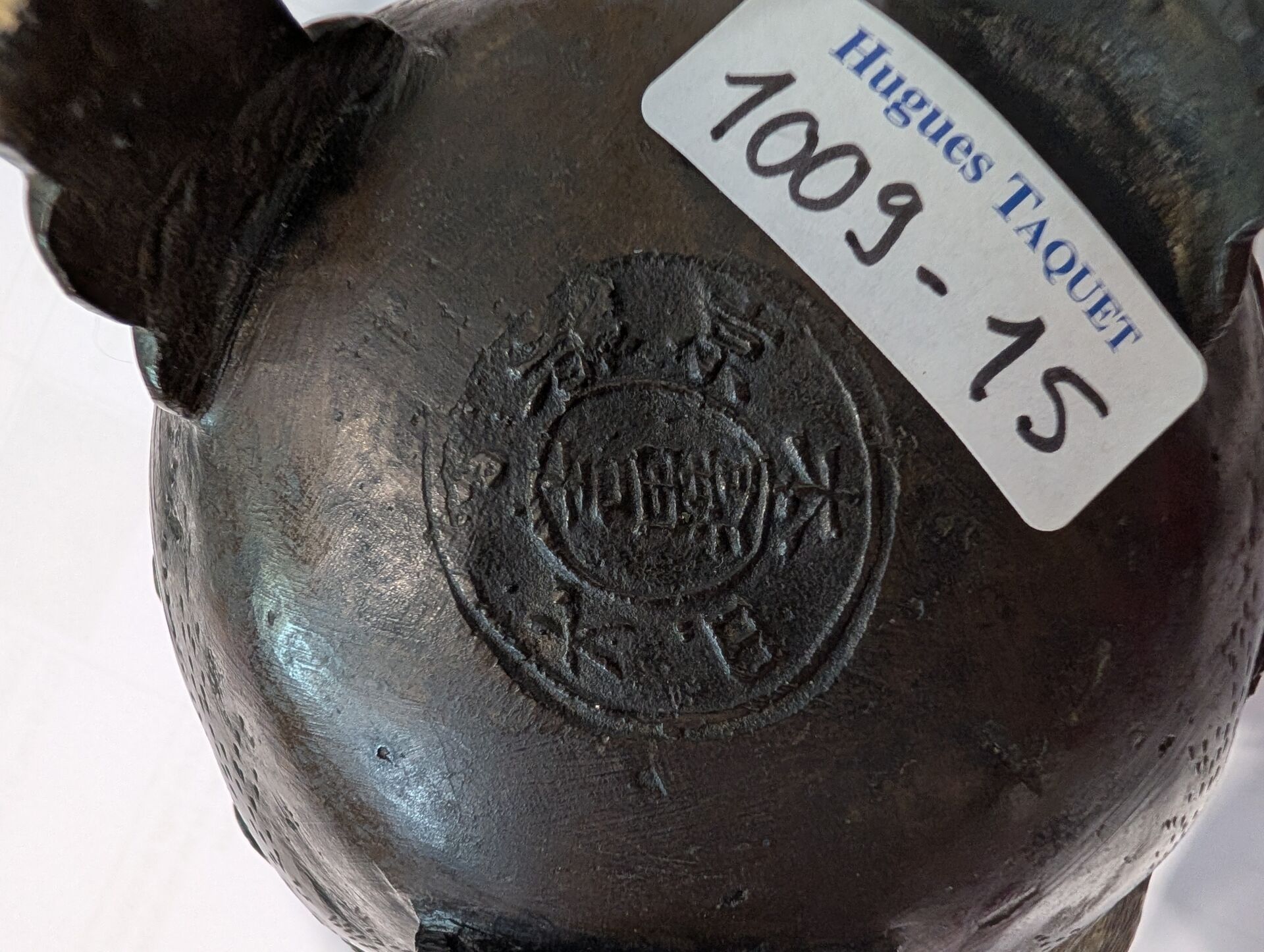 Asia Two bronze tripod bowls decorated in relief with birds …