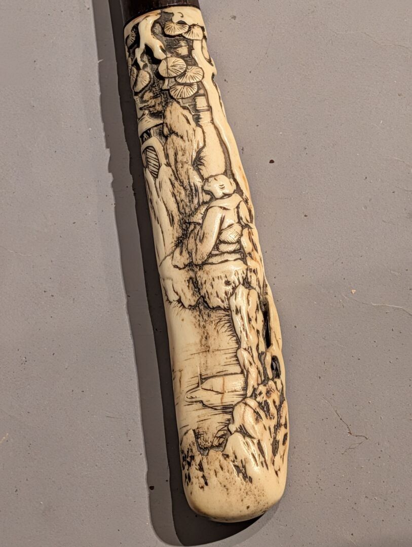 JAPAN Bone and wood cane decorated with a figure at the foot…