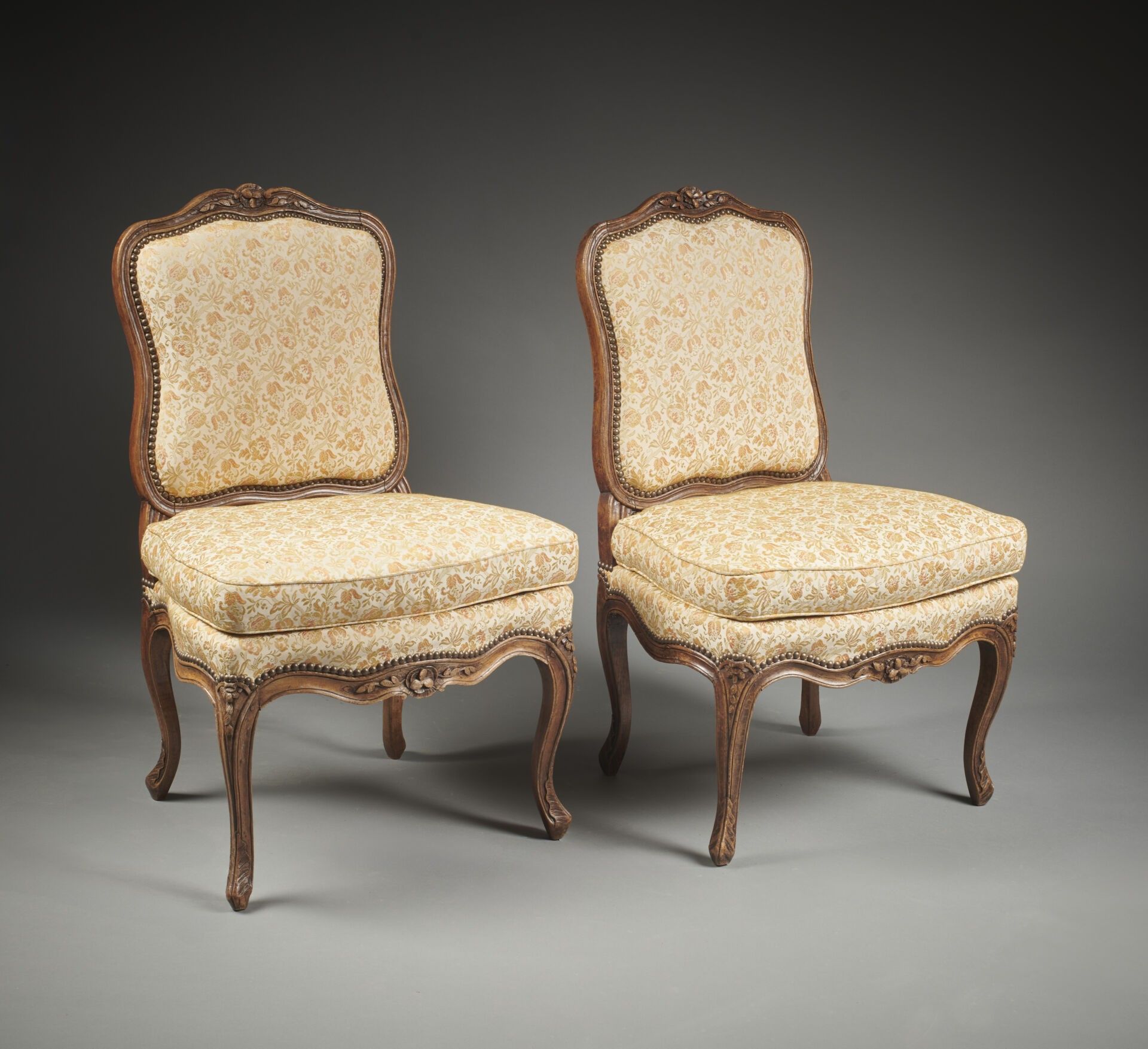 Pair of chairs In moulded wood with floral decoration, resti…