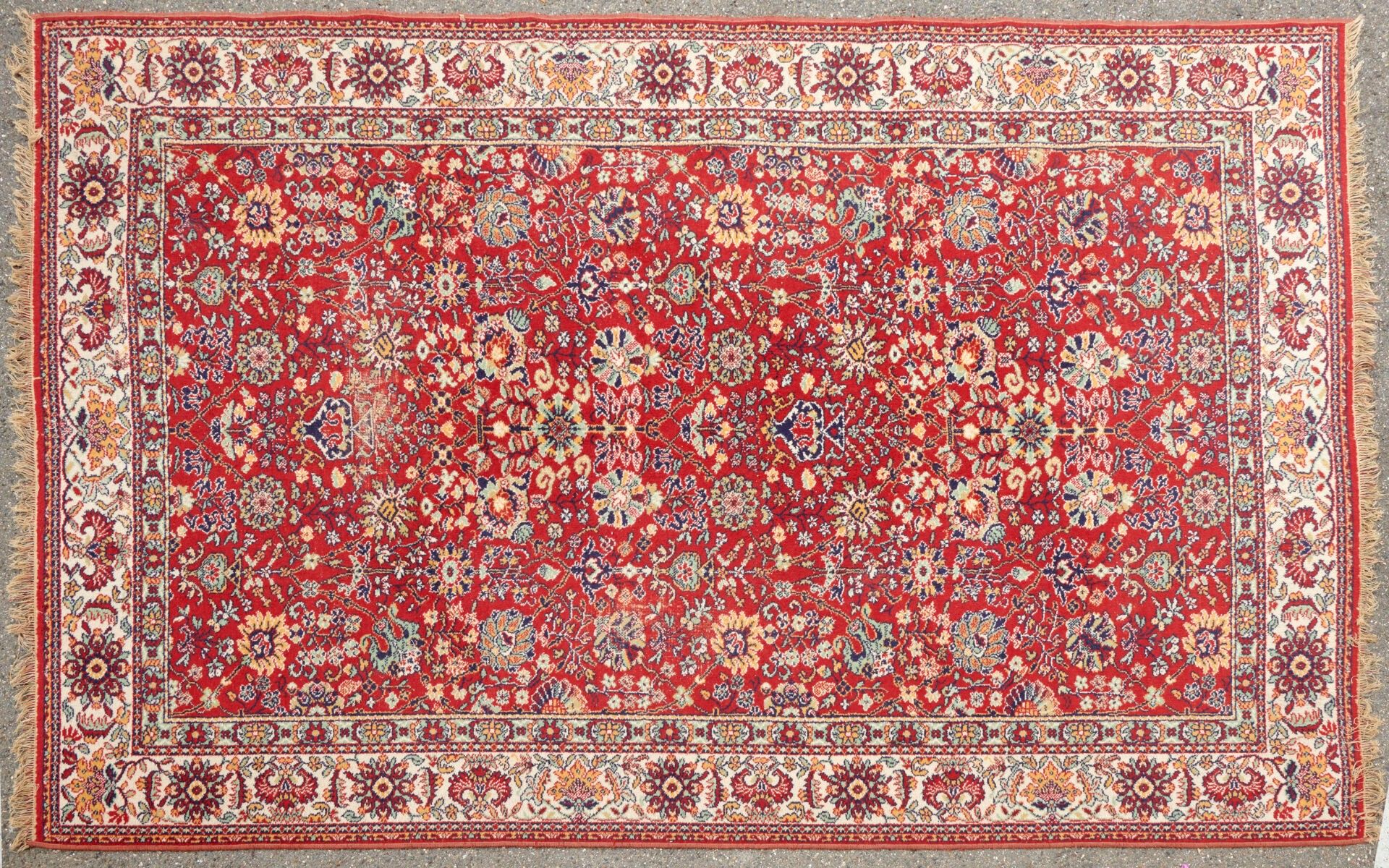 Rug Wool with floral decoration on a red background