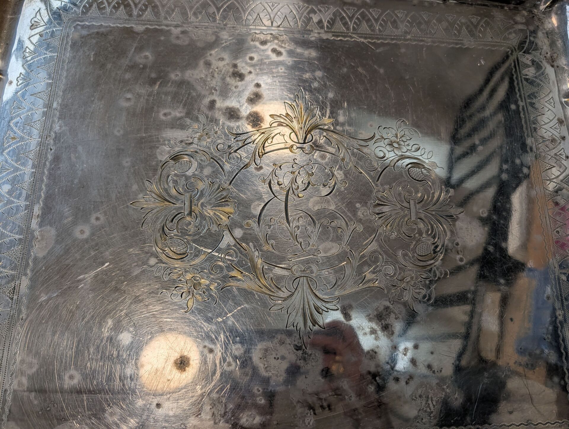 In silver-plated metal decorated with vine branches, engraved and monogrammed EC