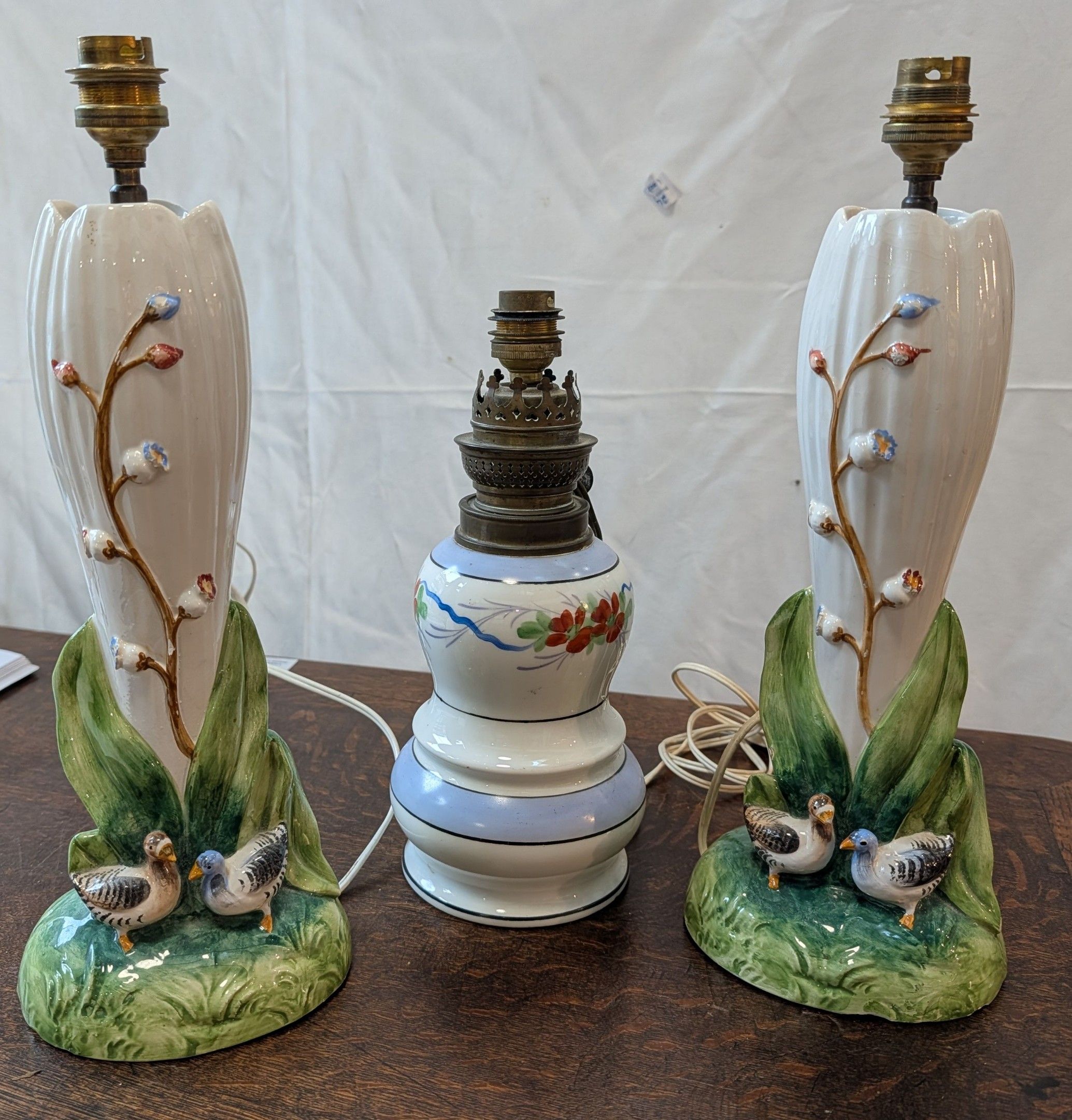Pair of lamps In polychrome earthenware decorated with duckl…