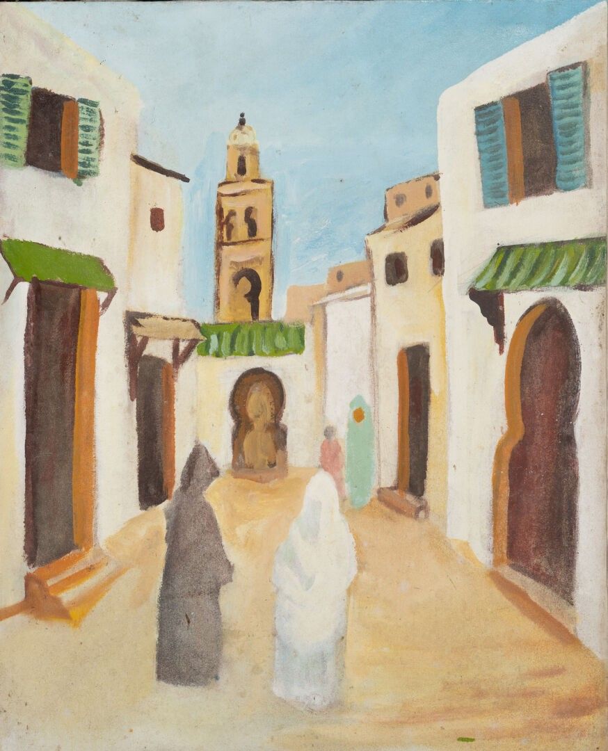School of the XXth century "Walk in a Maghreb village" oil o…