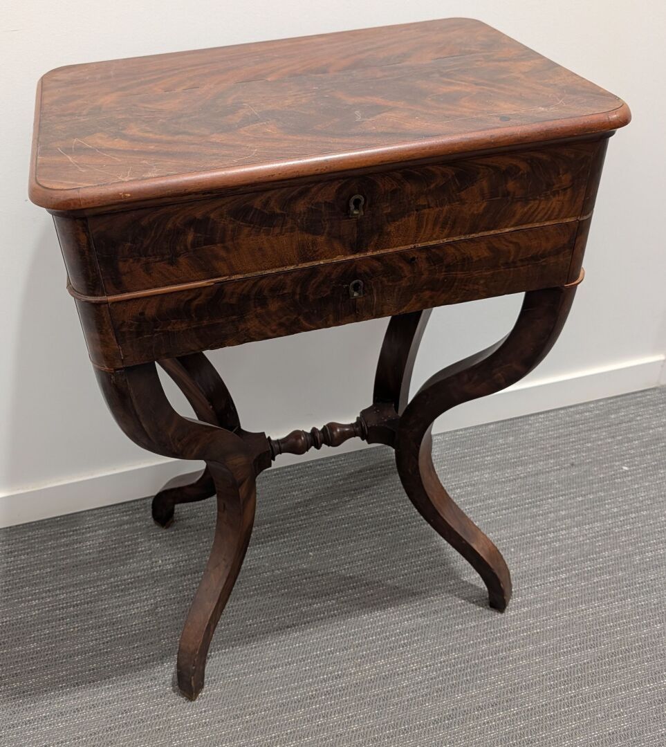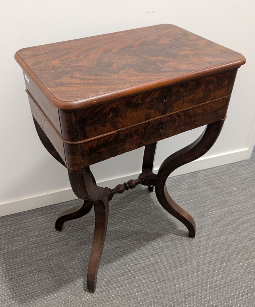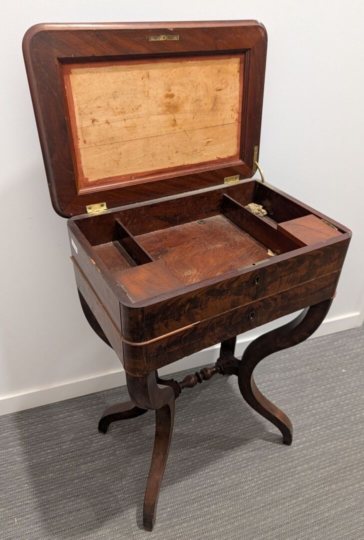 Worker In mahogany and mahogany veneer opening to a flap, re…