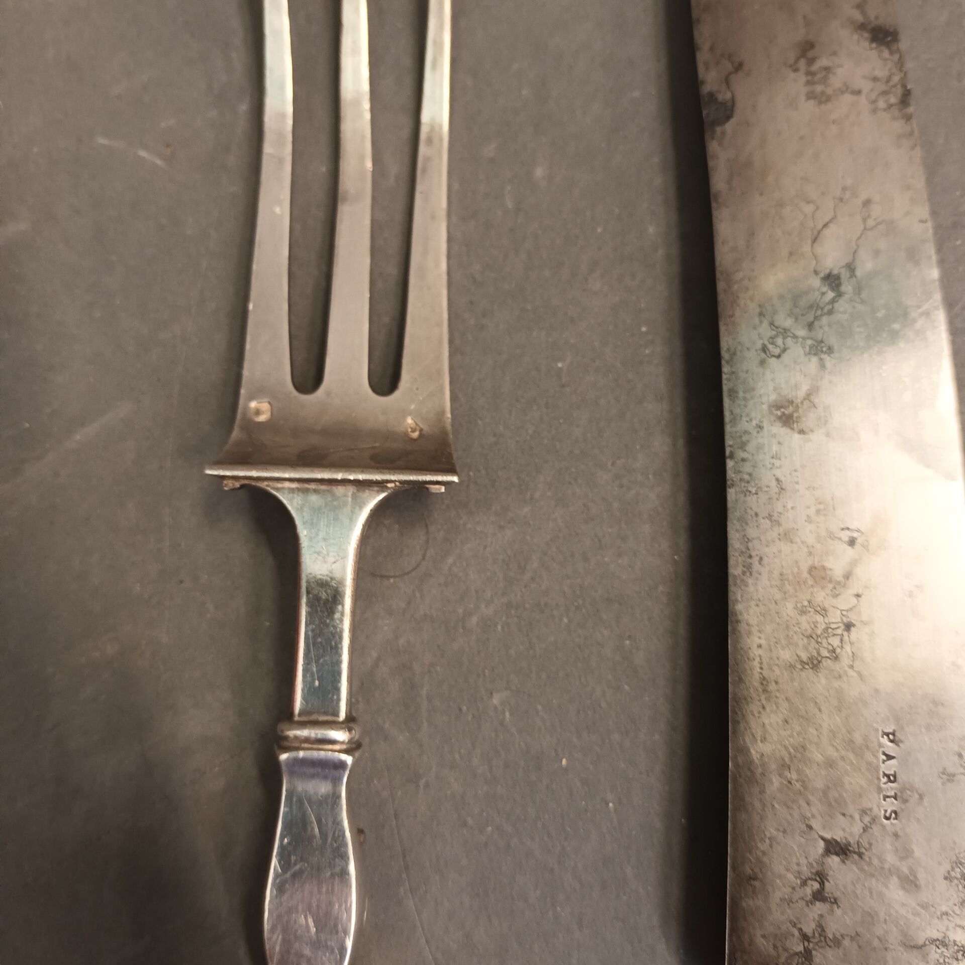 (Silver fork, knife with silver handle and steel blade)