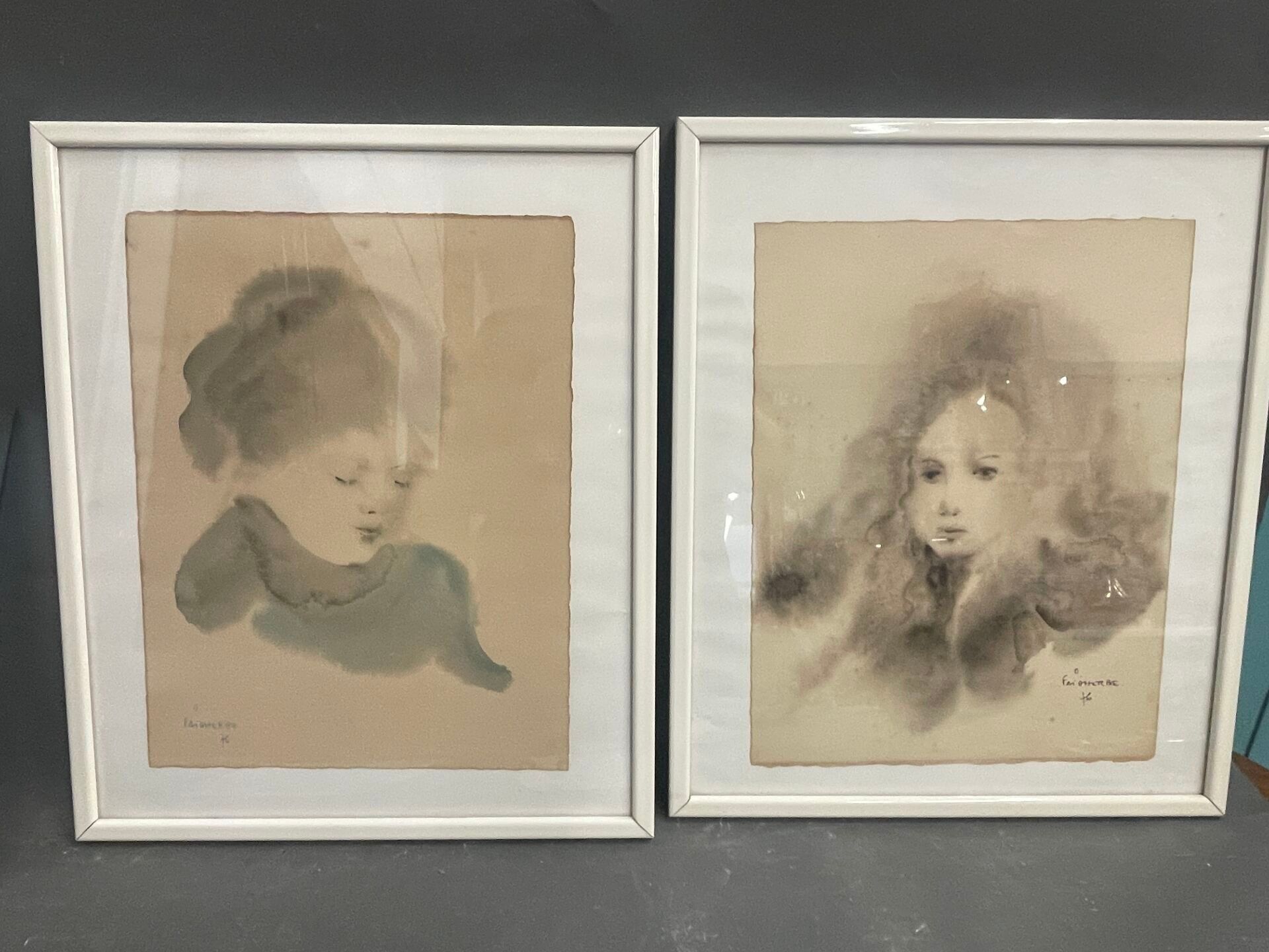 FAIDHERBE Two portraits of children Watercolour, signed and dated 76 33 x 25 cm