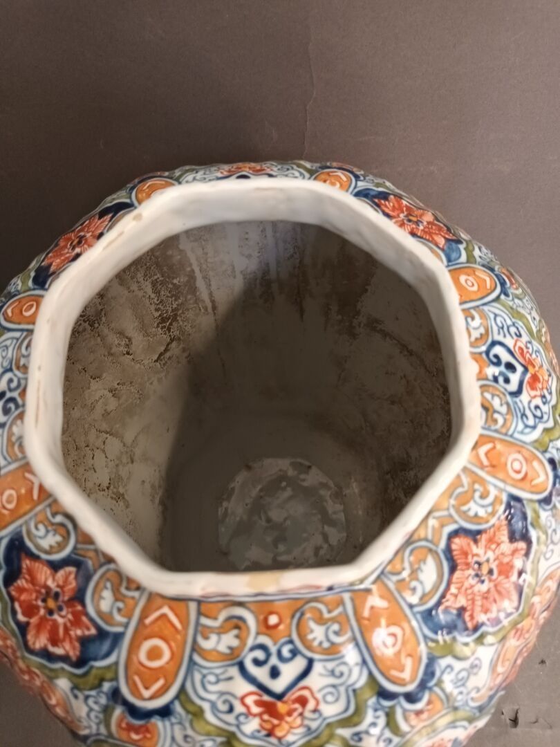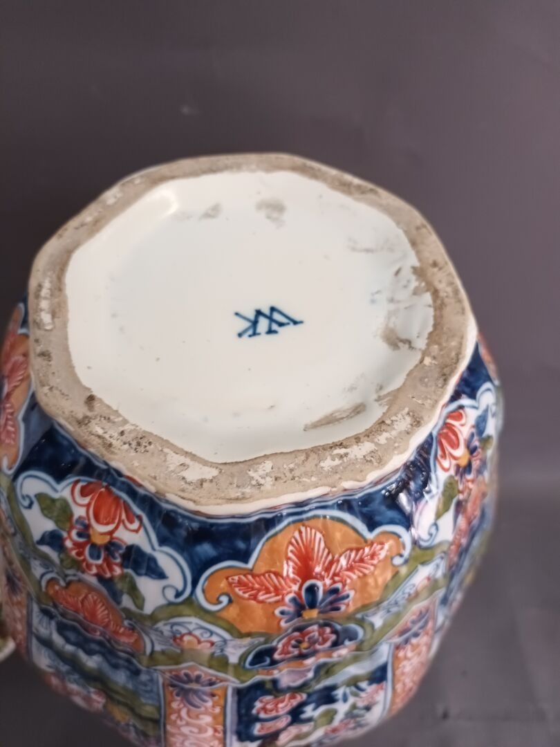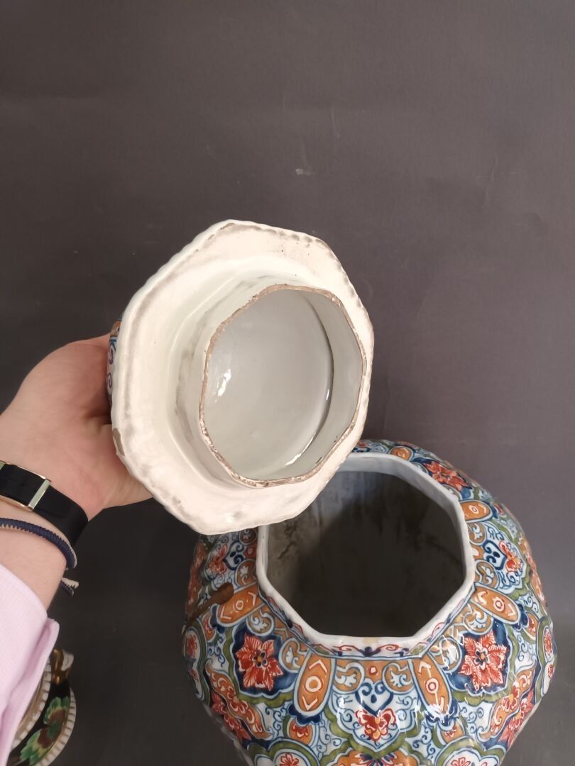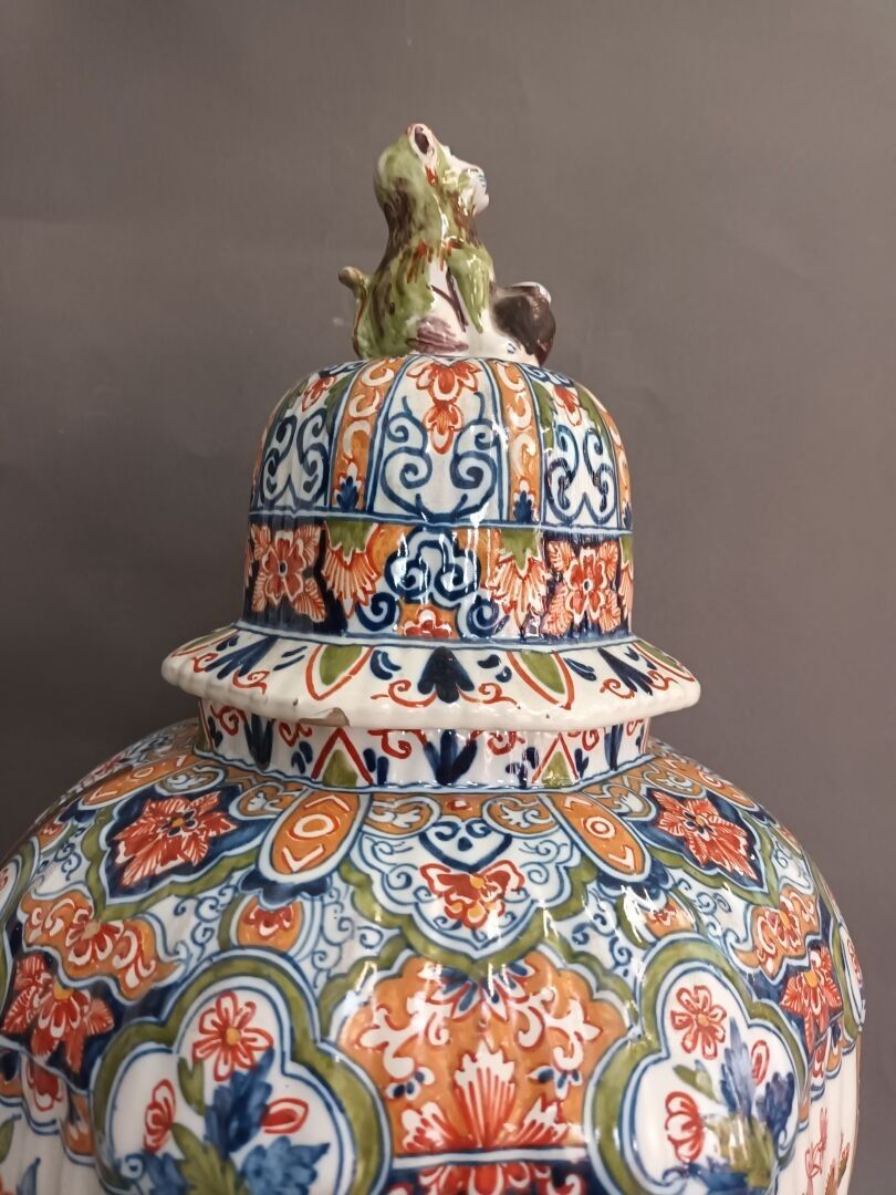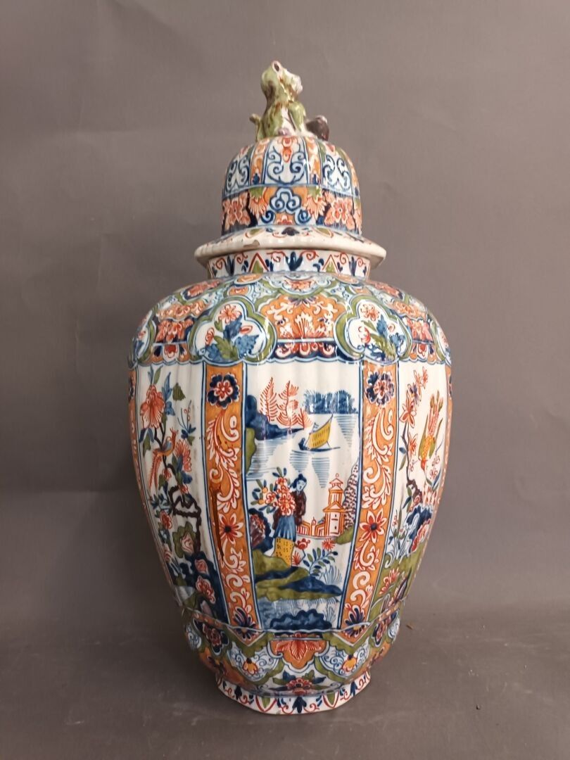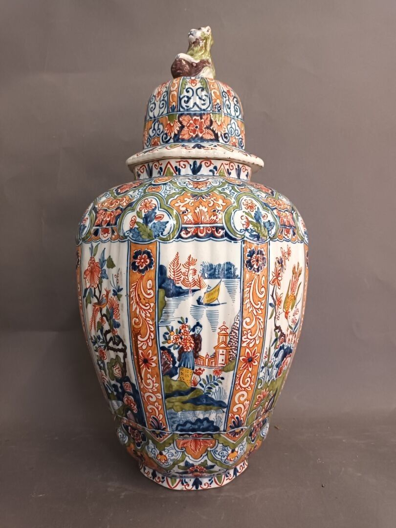 A large covered earthenware vase in the style of the Portuguese East India Company,