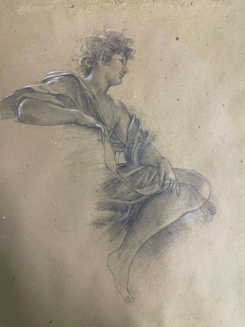 Academy of a Seated Young Man Pencil and chalk drawing