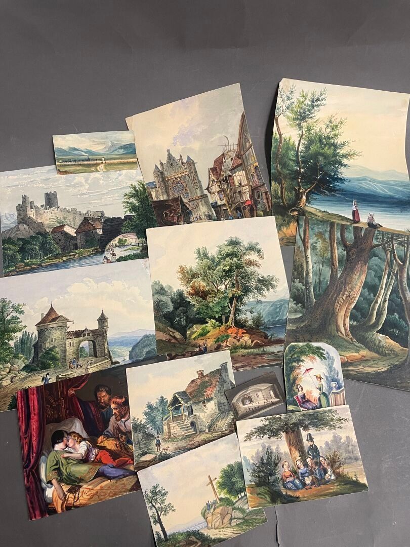 Lot of watercolours in colours landscape, Normandy, Edward's…