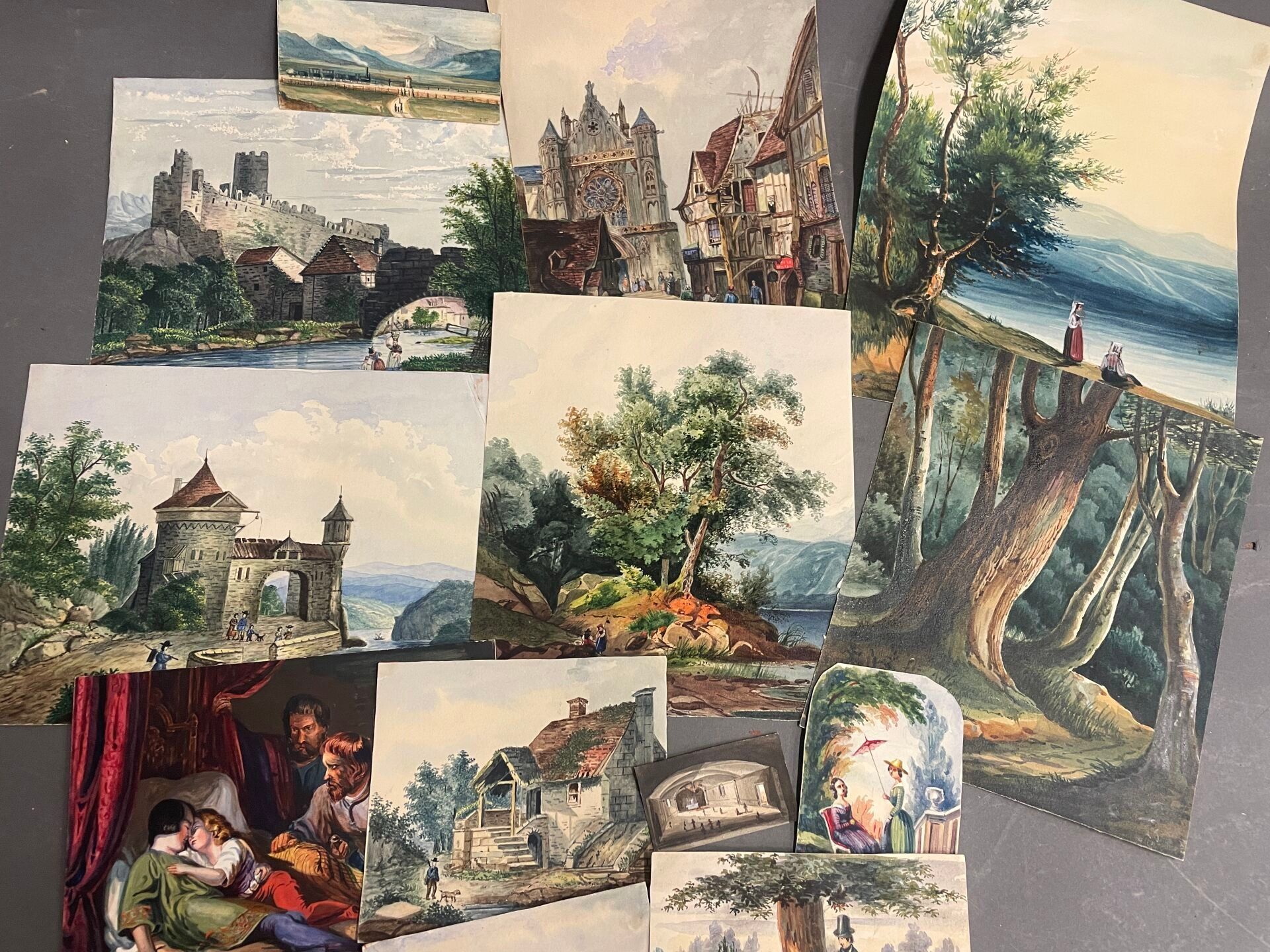 Lot of watercolours in colours landscape, Normandy, Edward's children at the Tower of London