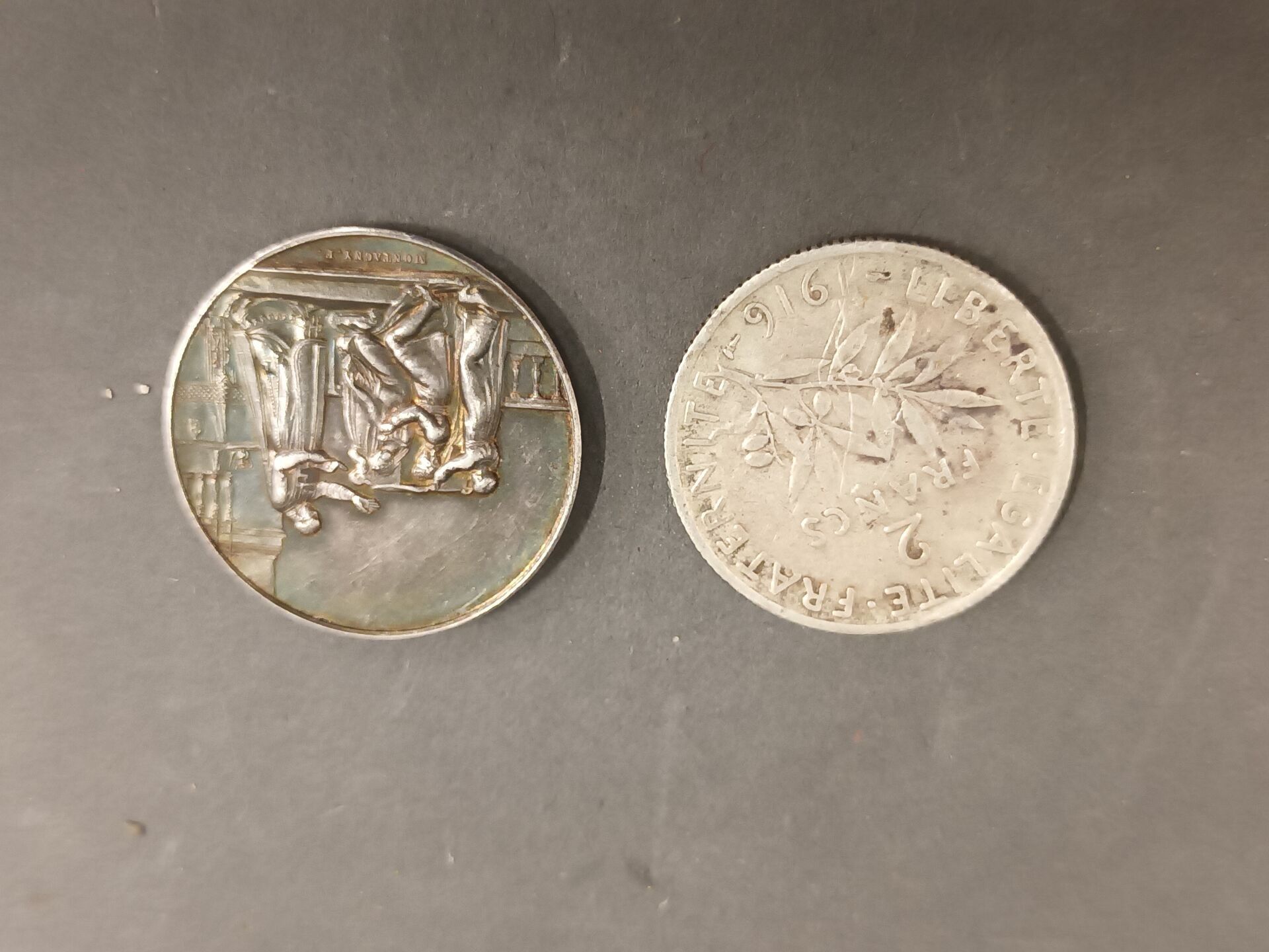 A 5 franc silver coin Medal of the Curé d'Ars preaching,