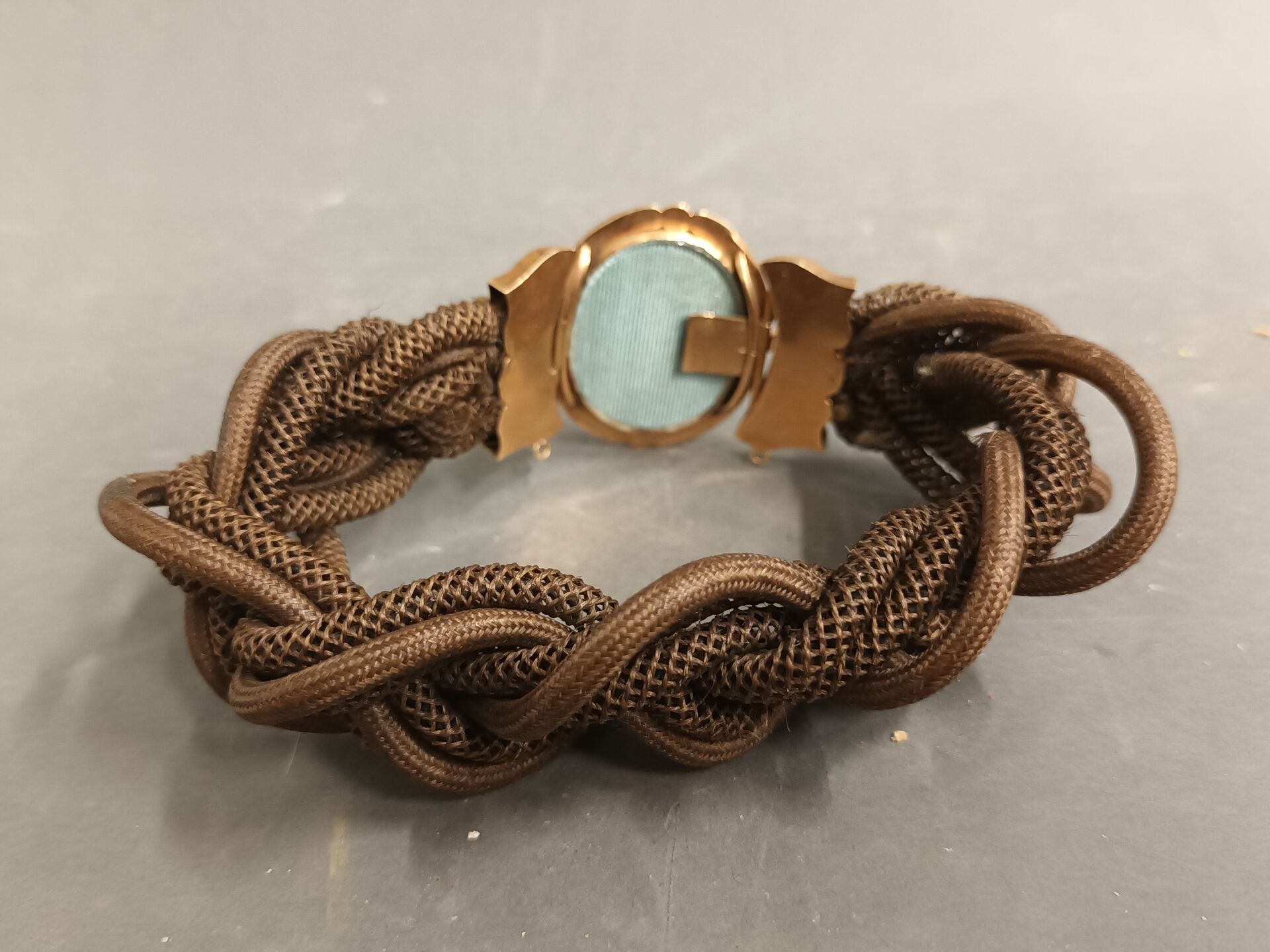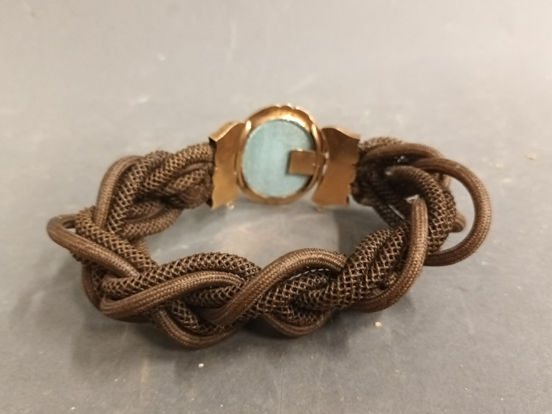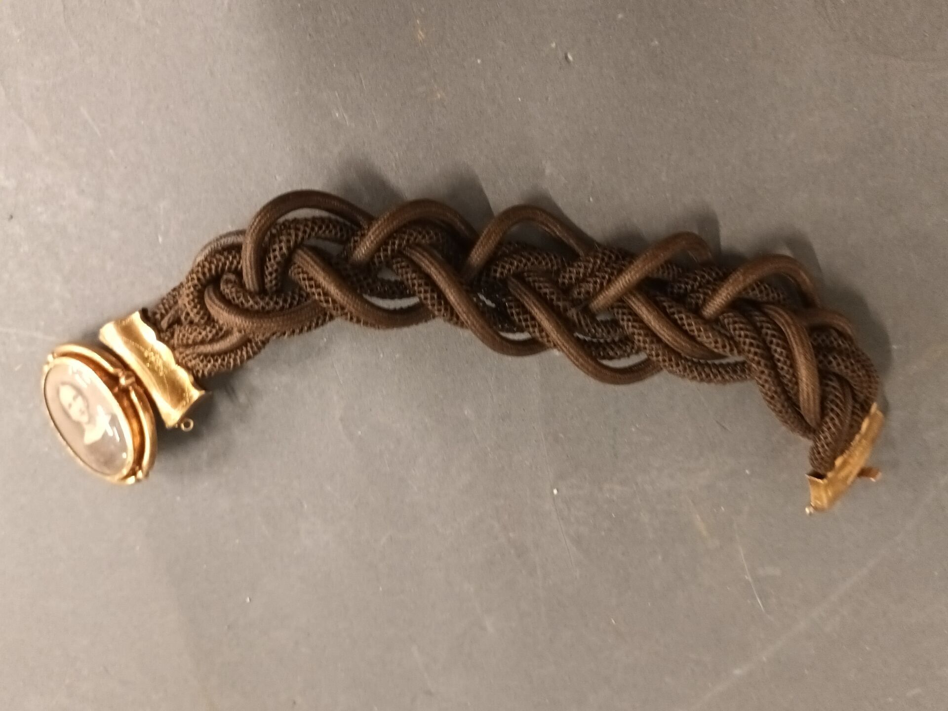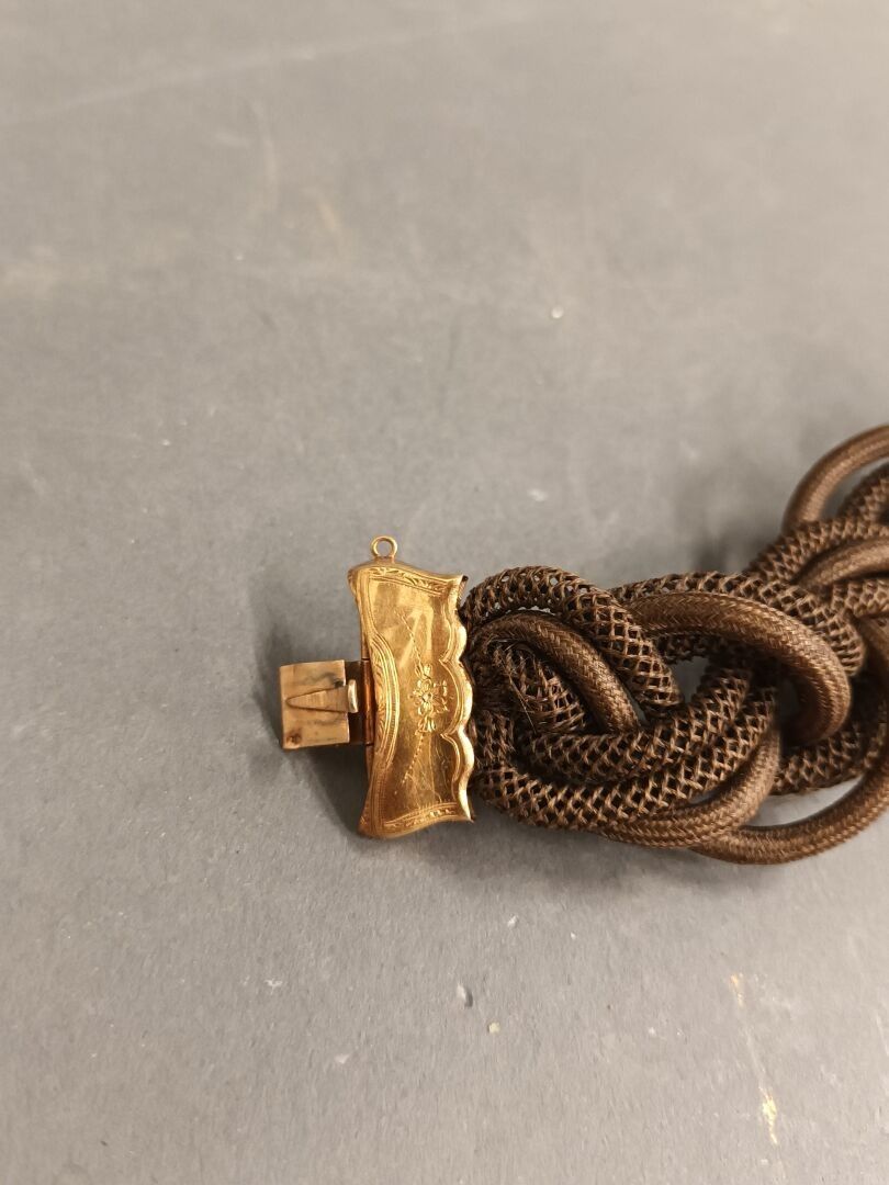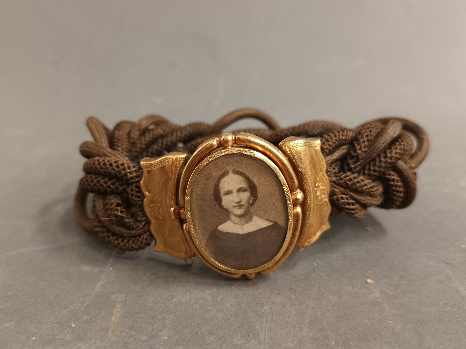 Hair bracelet with yellow gold clasp adorned with an old pho…