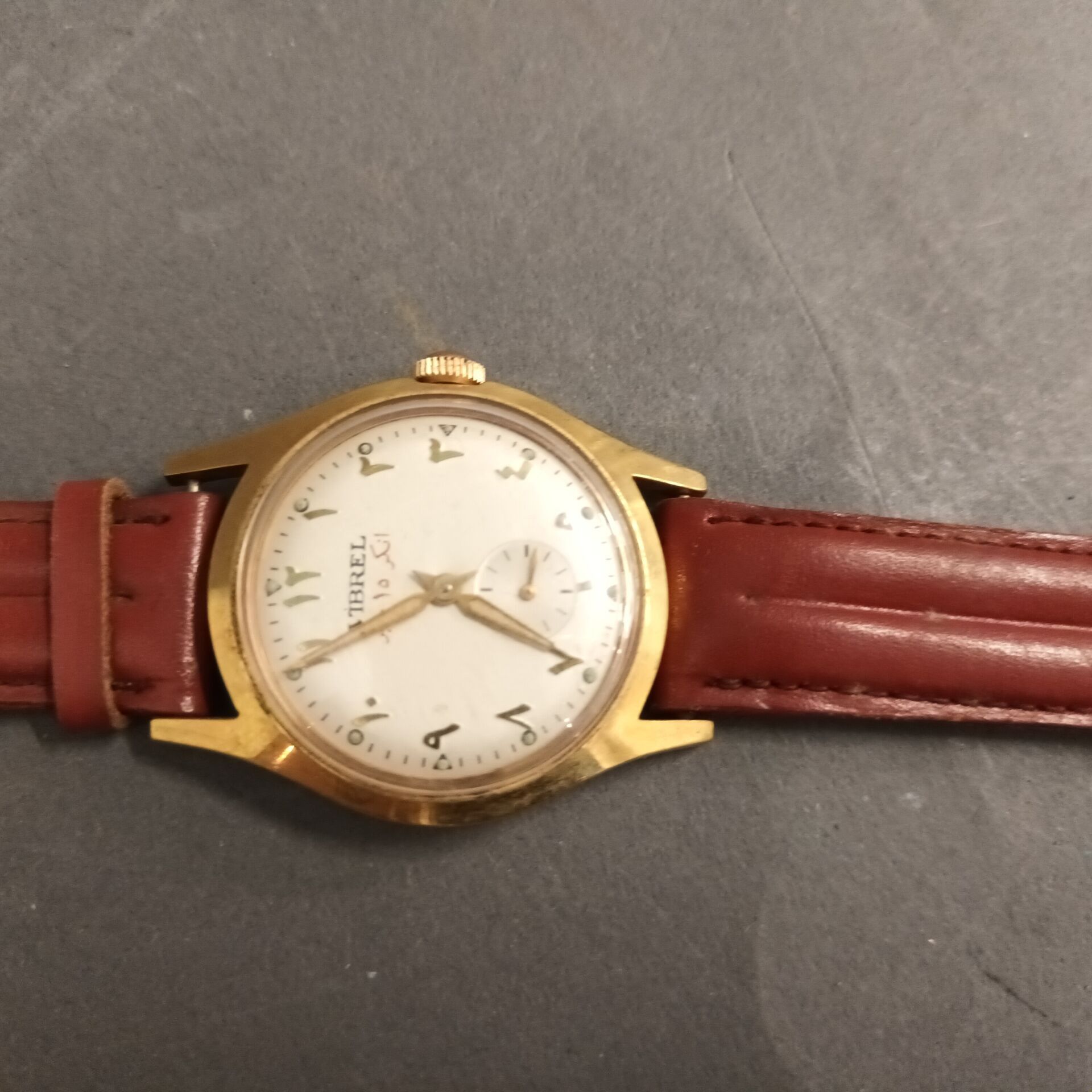 VIBREL, mechanical men's watch, gilt metal case, dial with Turkish numerals,