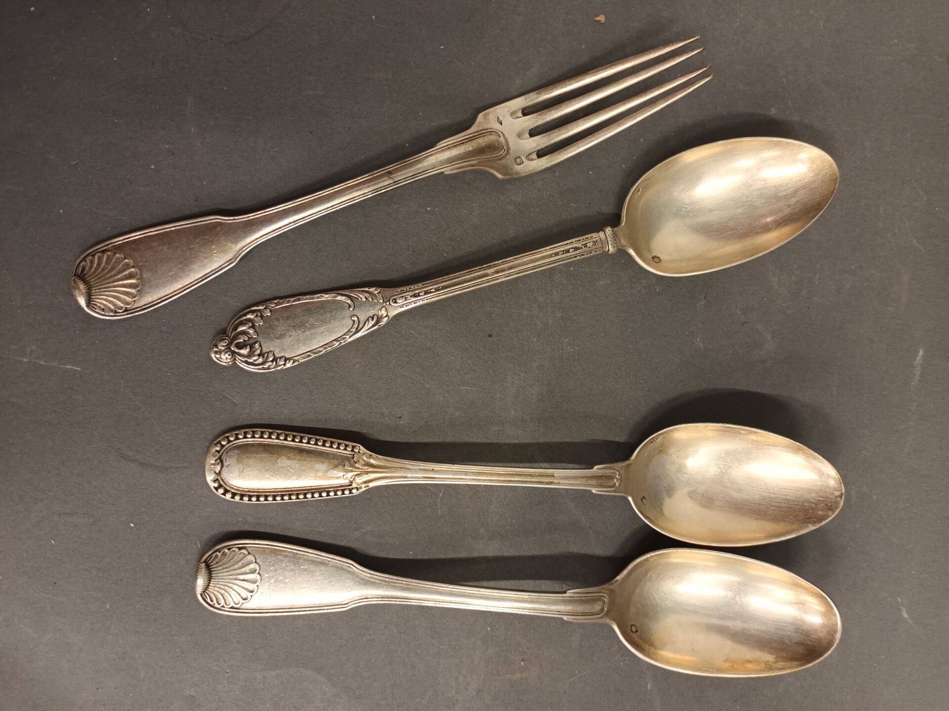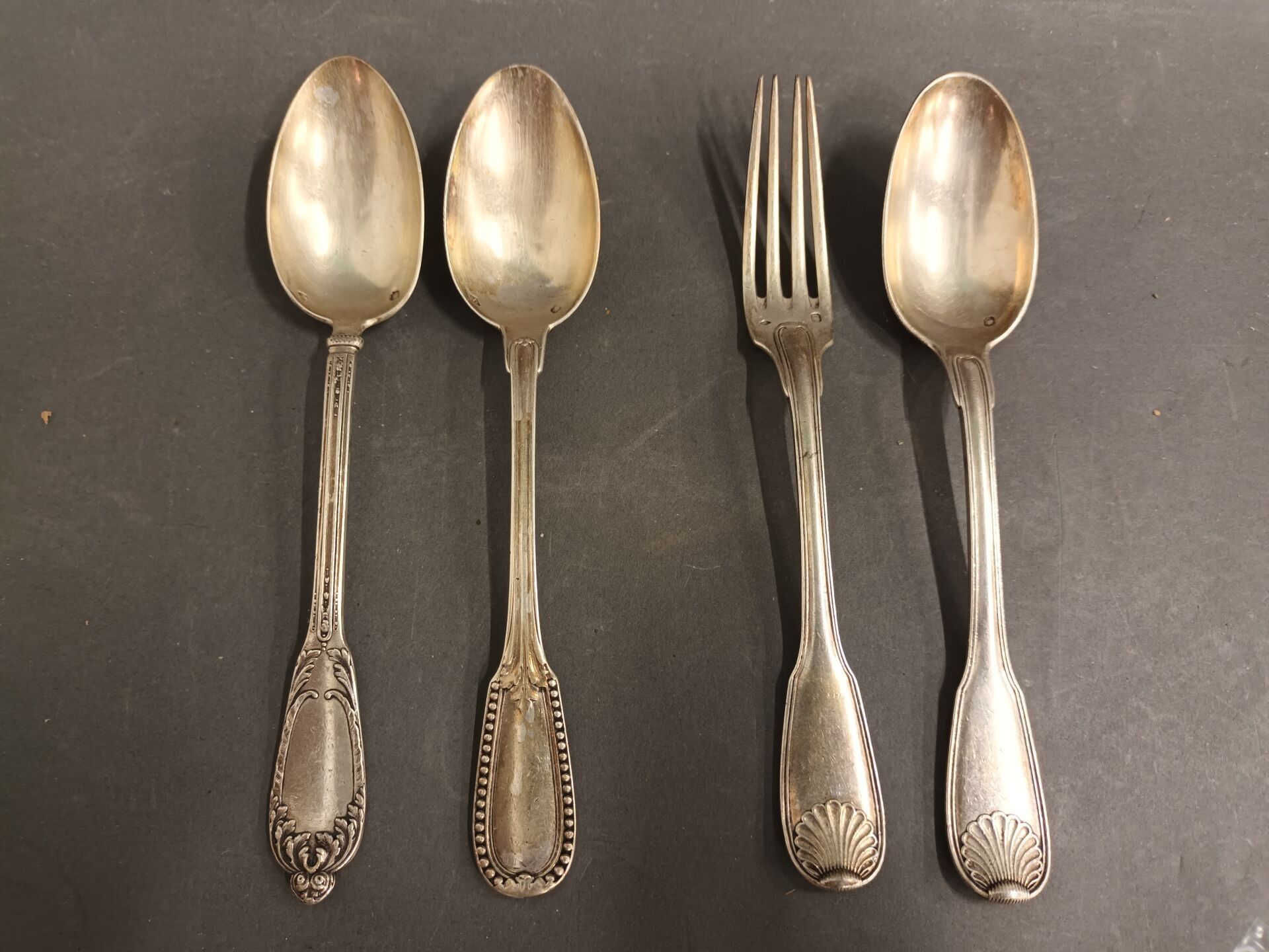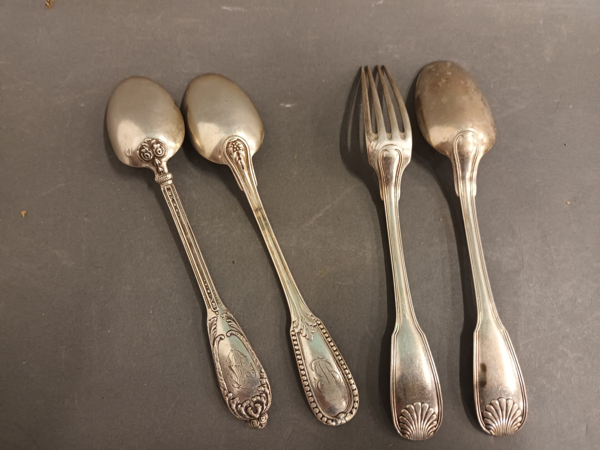 and two Minerve silver soup spoons, pearl and composite models (late 19th century)