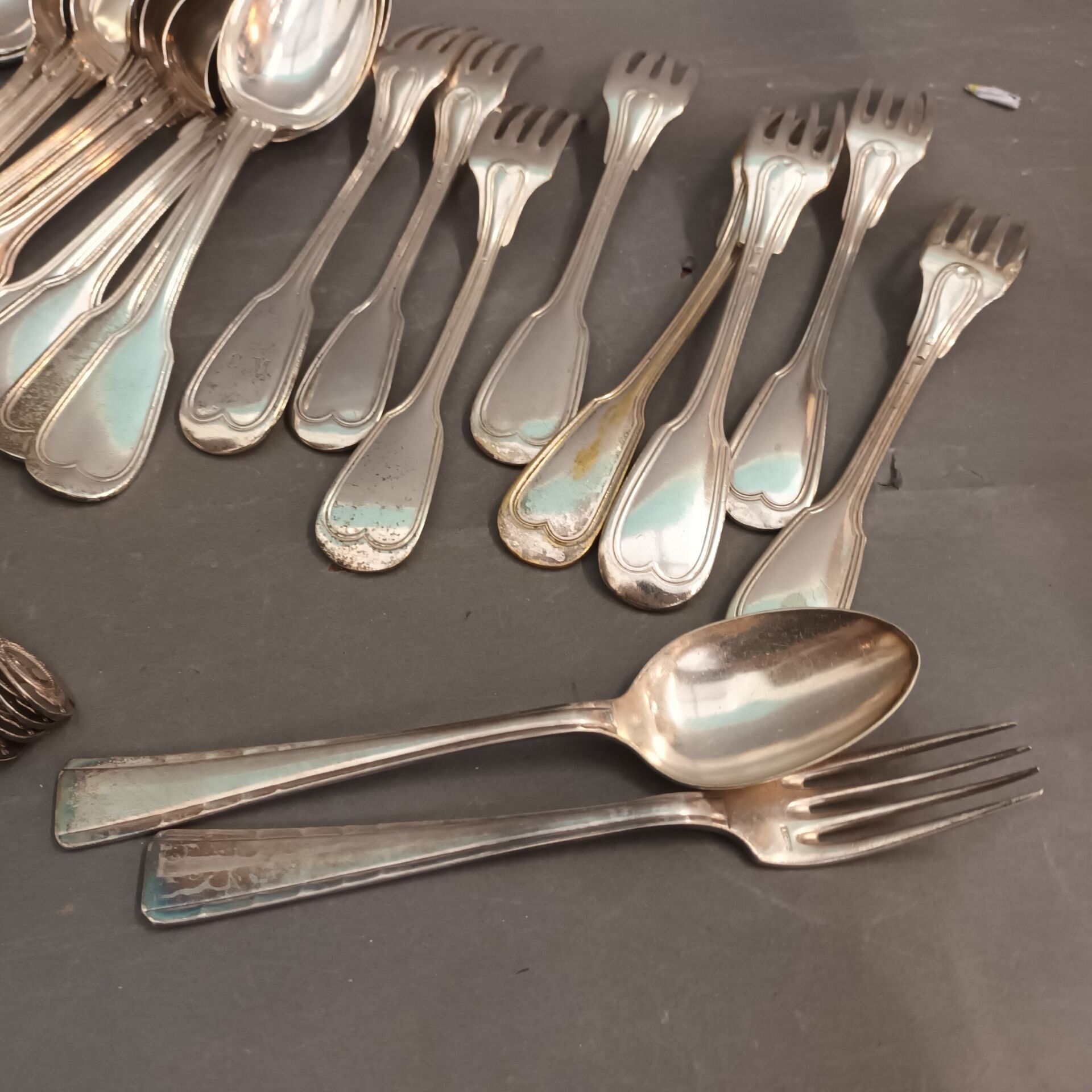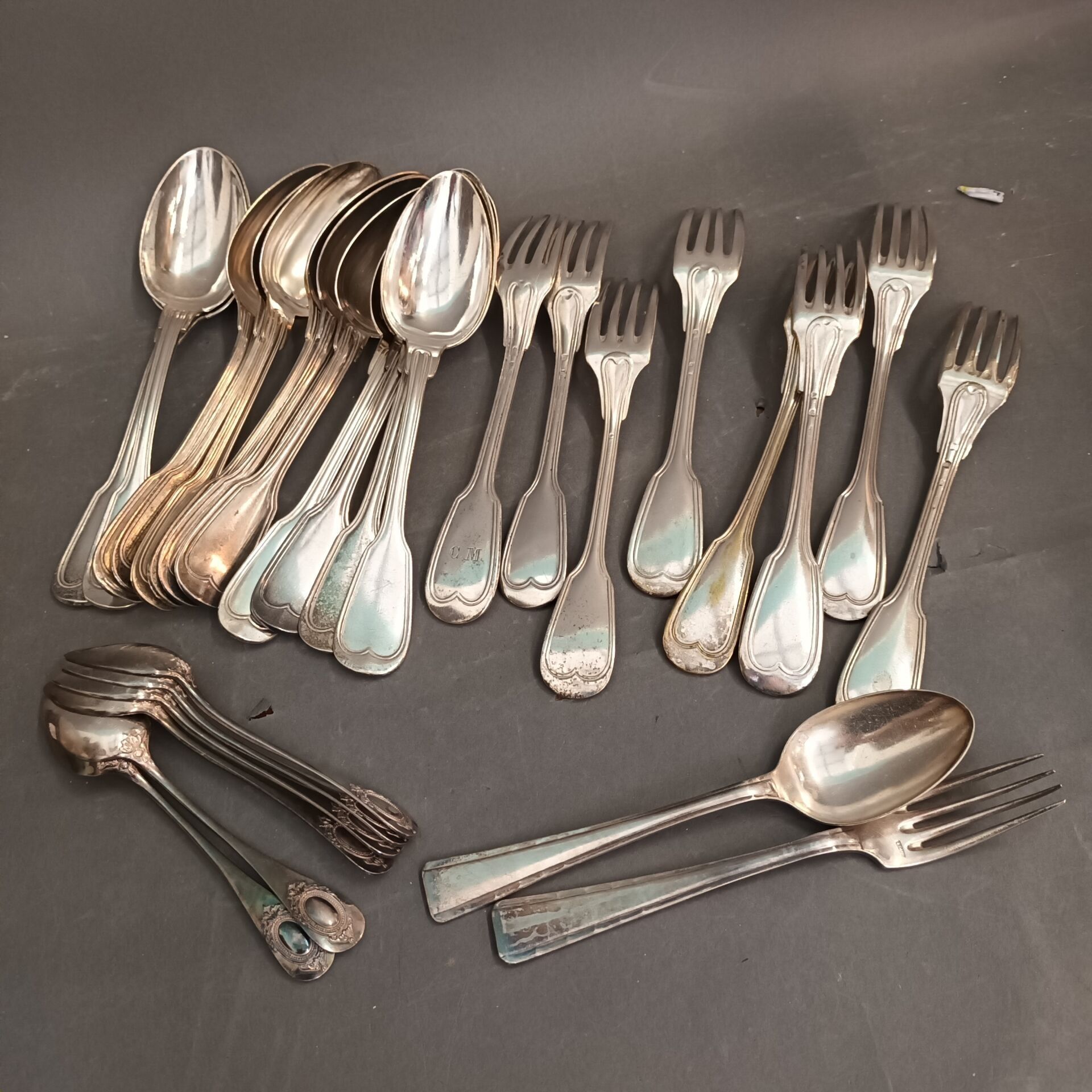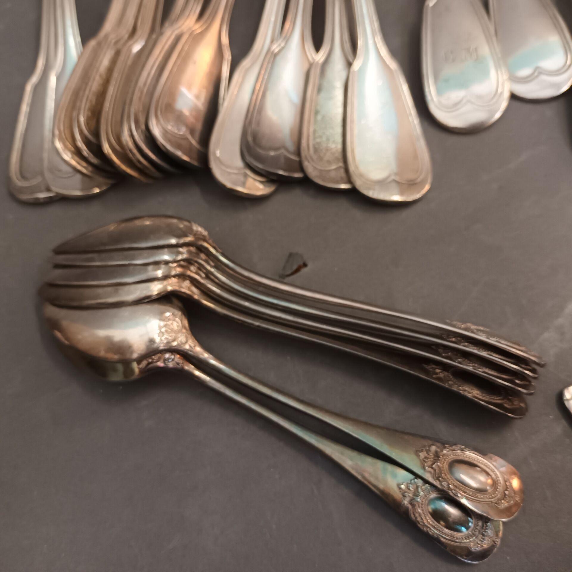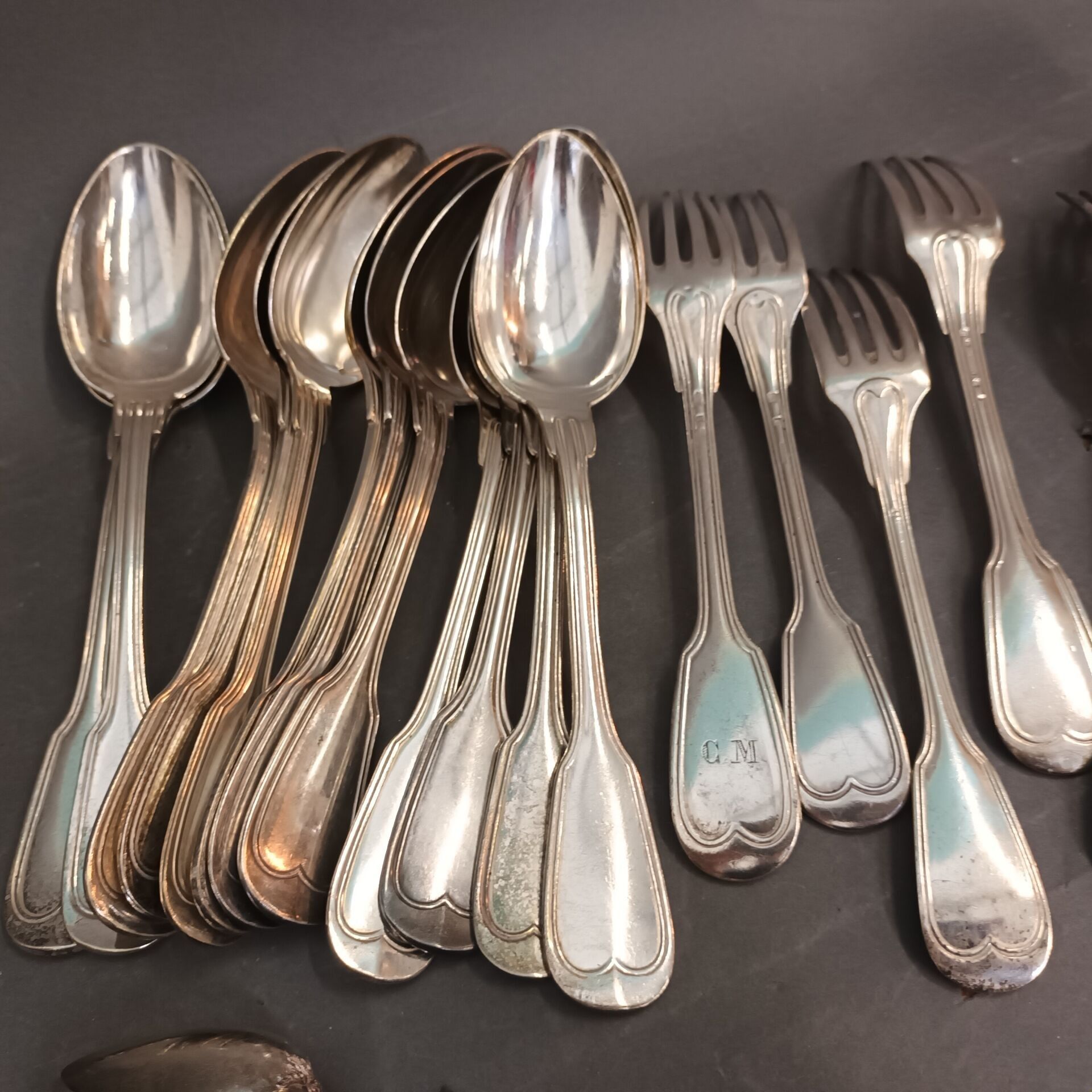 A large lot of silver-plated flatware, filet pattern, some monogrammed, others blank,
