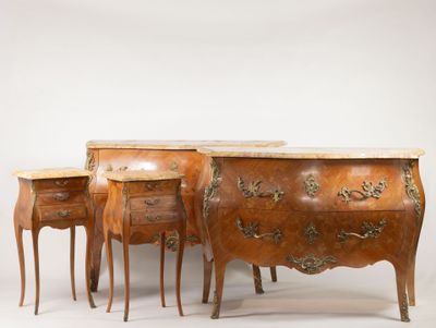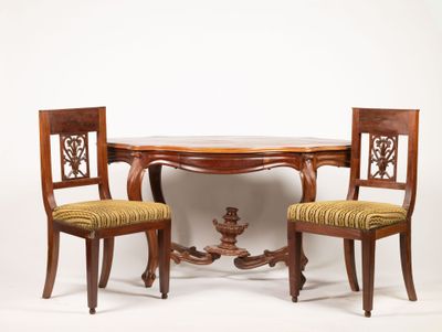 SET OF FURNITURE comprising : - A moulded and carved wooden …