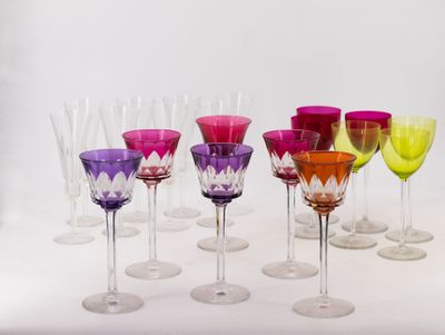Set of glasses : - BACARRAT Suite of five red, orange and vi…