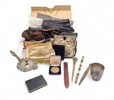 SET including : -A dozen pairs of leather gloves; -Small bag…