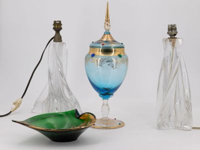 REUNION OF GLASS OBJECTS : - BACCARAT, twisted crystal lamp …