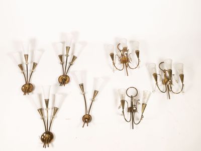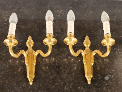 In the ARLUS style - SET OF THREE GILDED BRASS LIGHTS with t…