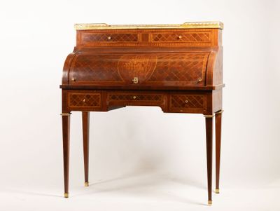 CYLINDER DESK in wood, veneer and marquetry, opening with fi…