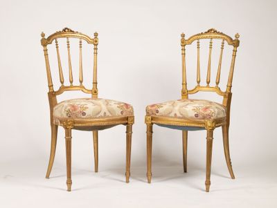 Pair of Louis XVI style giltwood chairs with moulded and car…