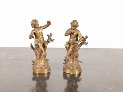 Sylvain KINSBURGER (1855-1935) Pair of putti on a tree stump…