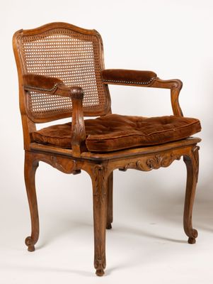 Pair of moulded, carved and caned wooden armchairs decorated…