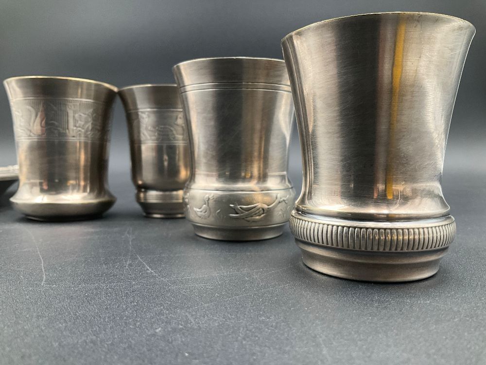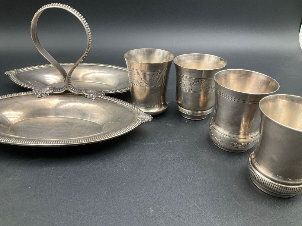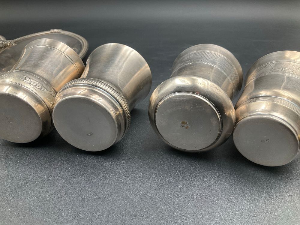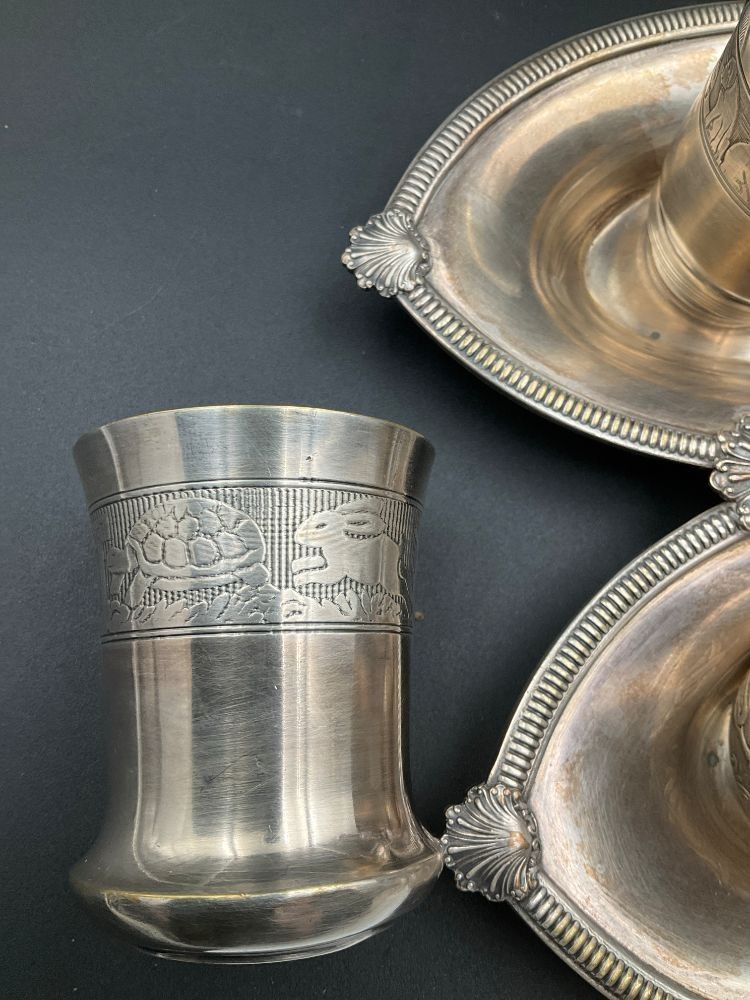 A set of 4 beautiful silver-plated goblets and a display stand, decorated at the end of the 19th century.