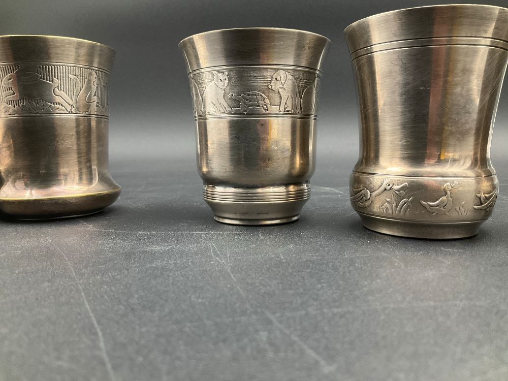 3 goblets with animal decoration (including a fable by La Fontaine).