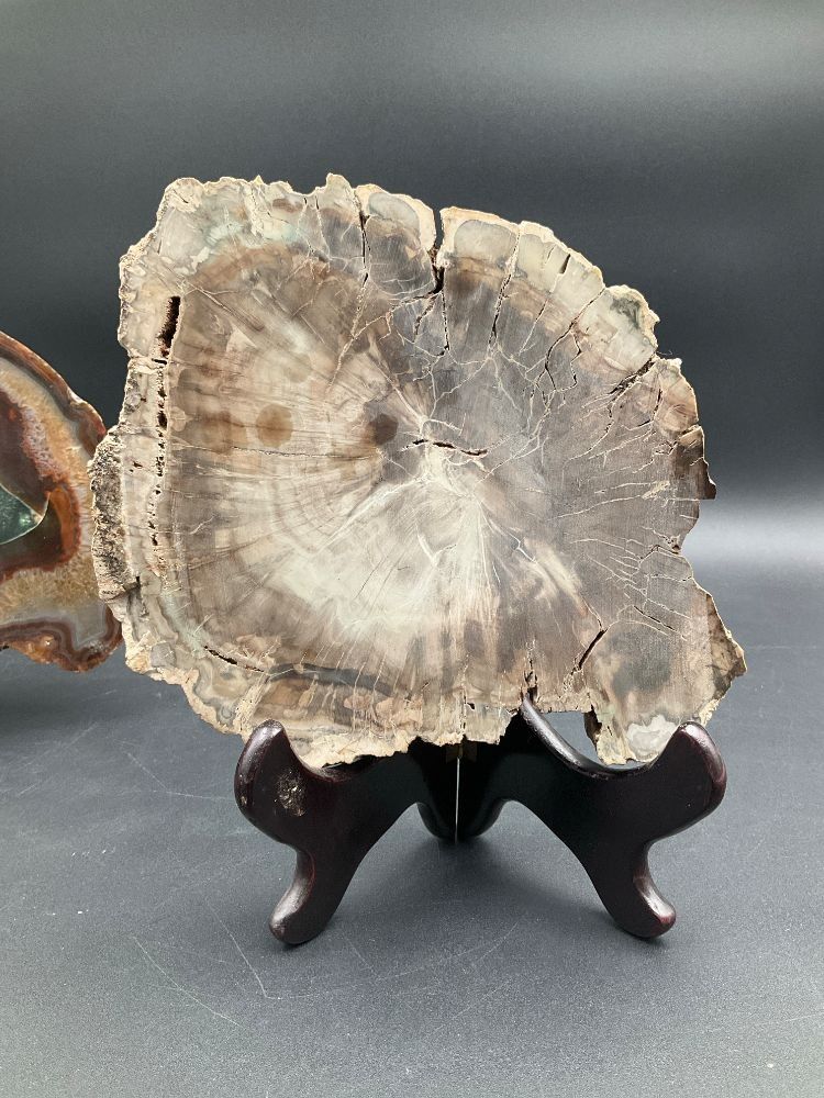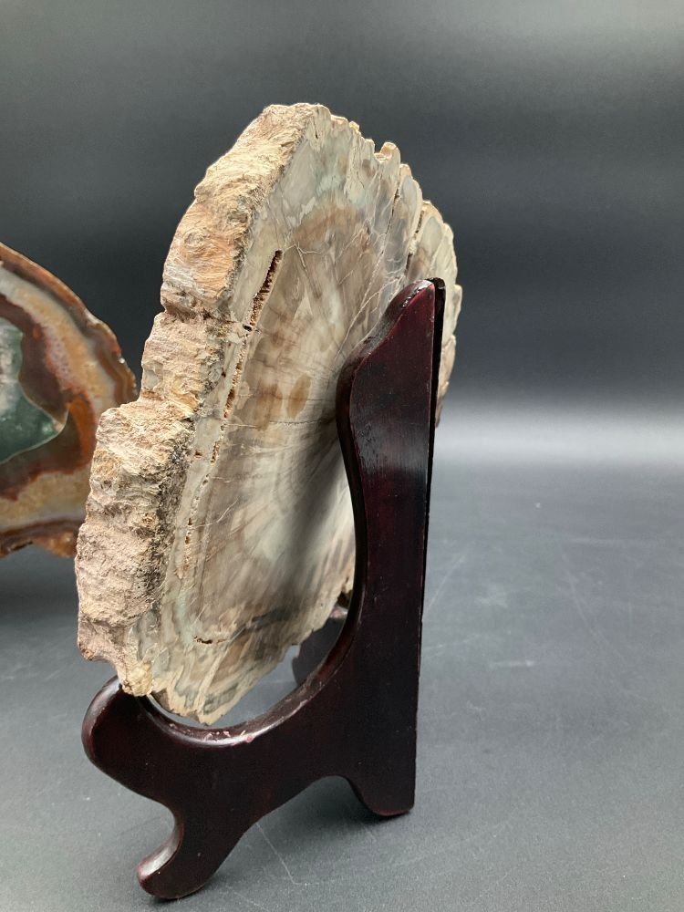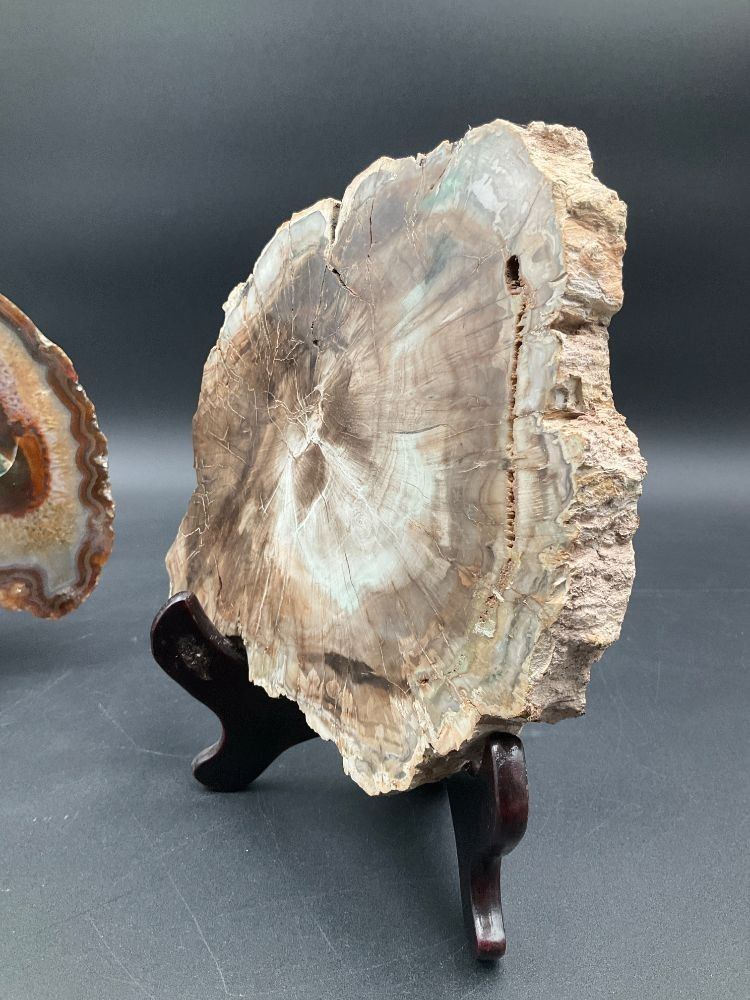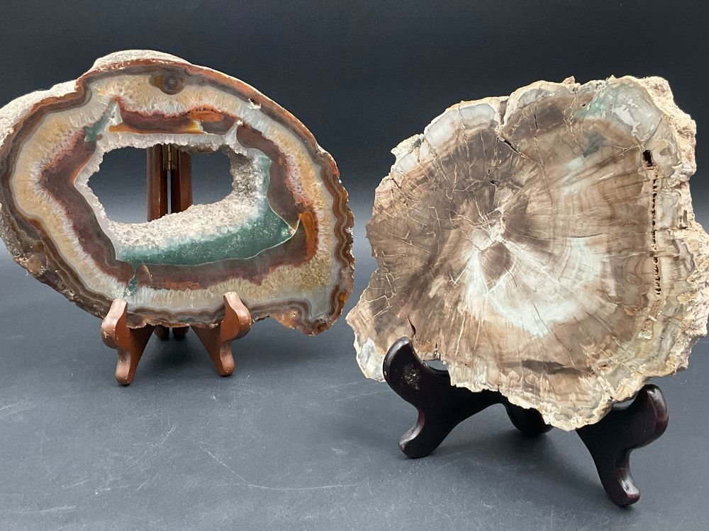 Agatha and fossilised wood. Provenance undetermined. Dimensions: 24 and 23 cm