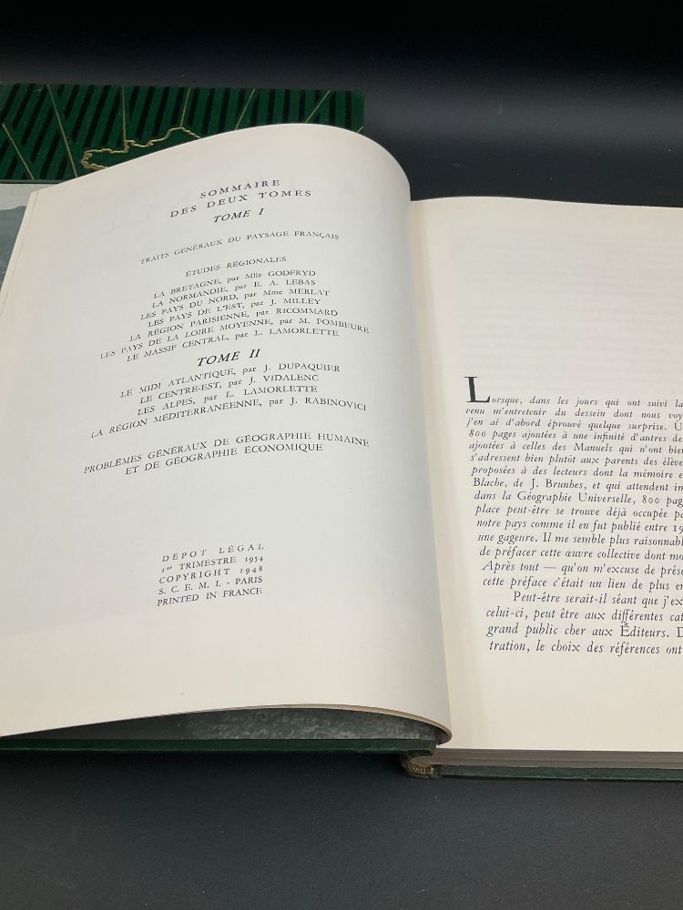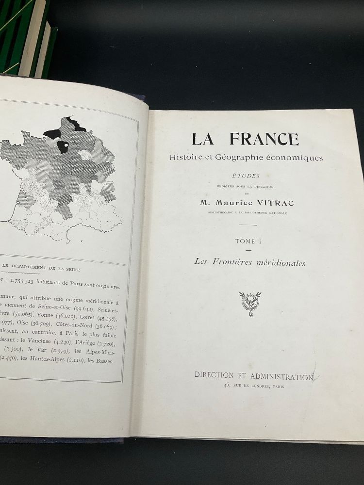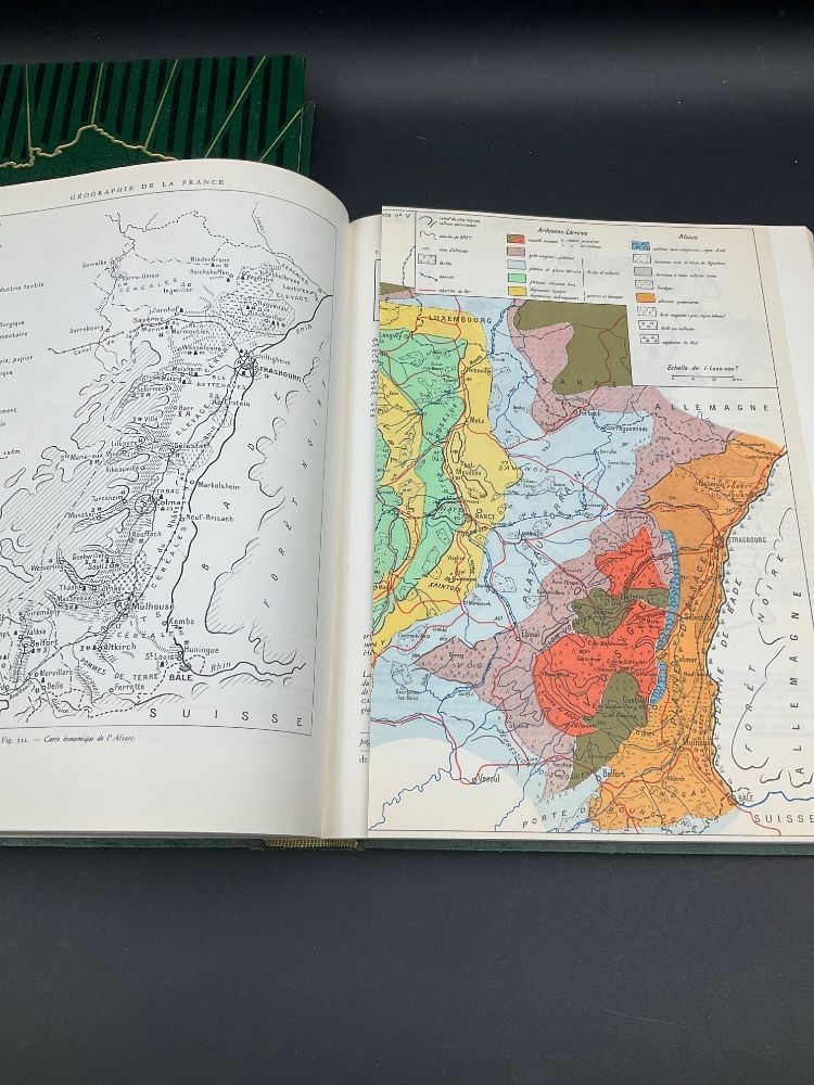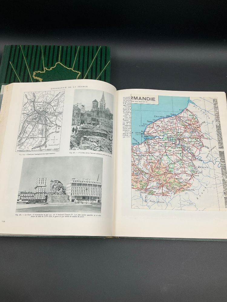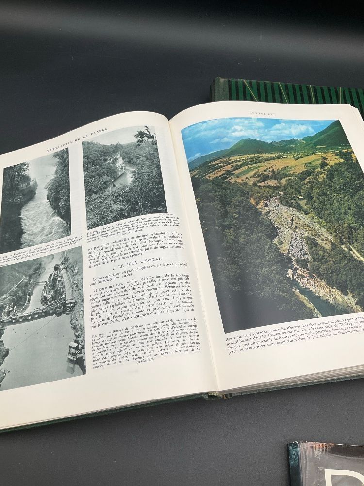 6 works of geography and history: 2 editions from 1954 "la France", numerous maps and illustrations, "les hauts lieux de l'histoire du monde", "Paris vu du ciel" (Yann Arthus-Bertrand 1998), "la terre" (Larousse edition, early 20th century).