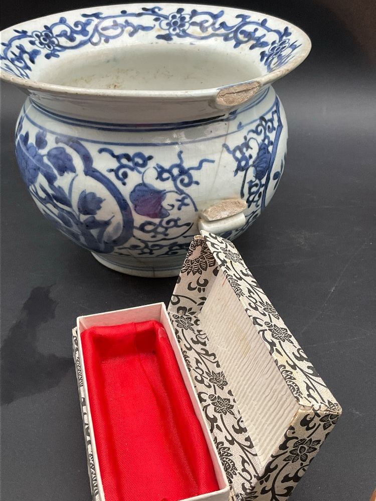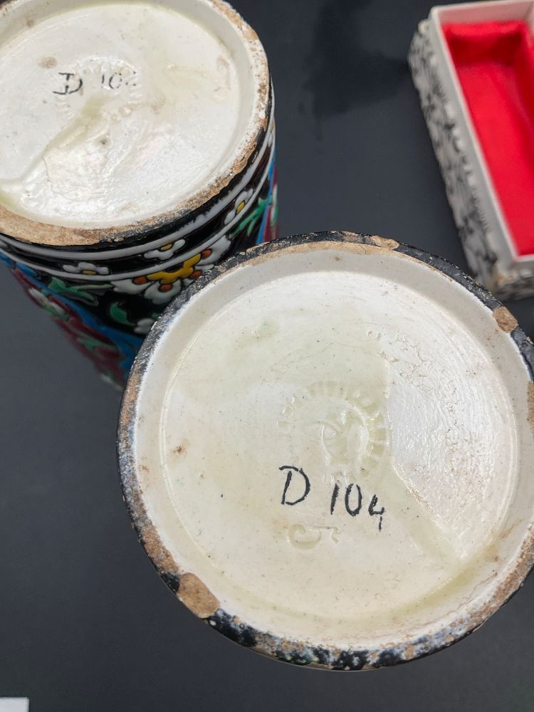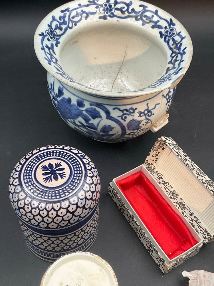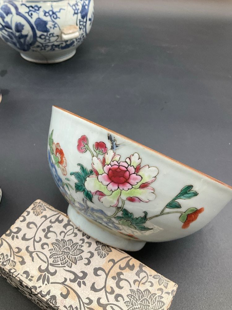 A lot of various Asian ceramics: 2 small scroll vases, a bow…
