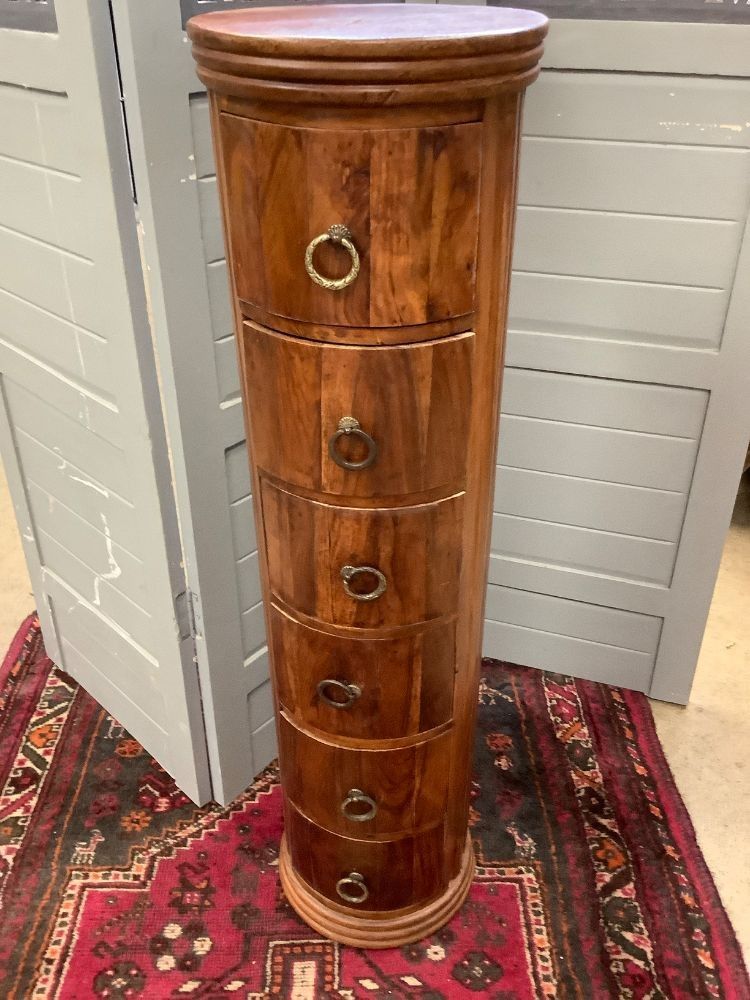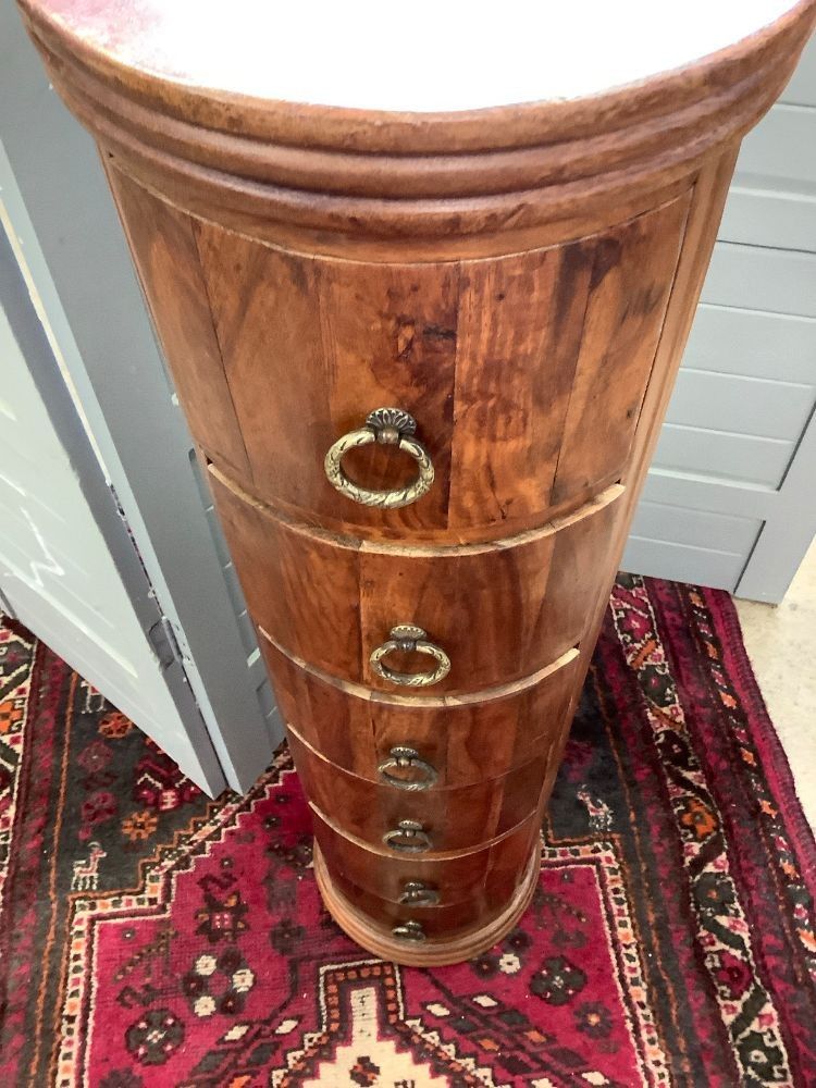 Beautiful round storage column (CD) with 6 drawers in exotic wood.