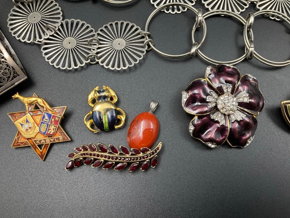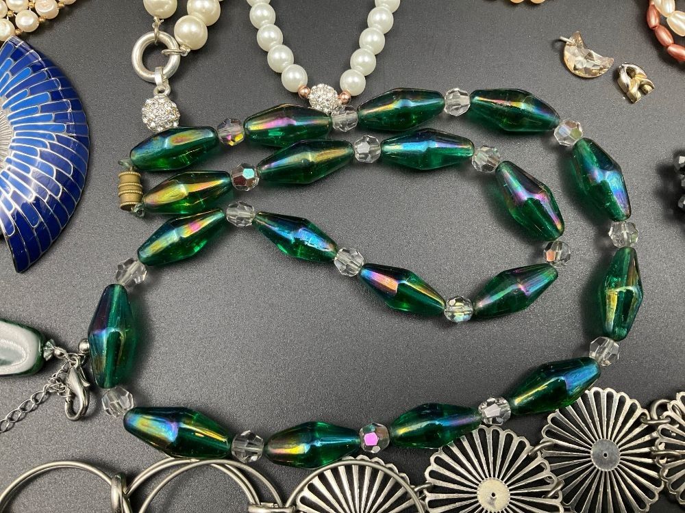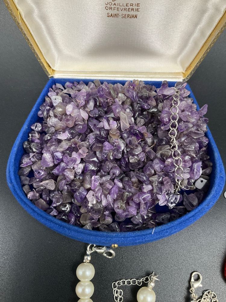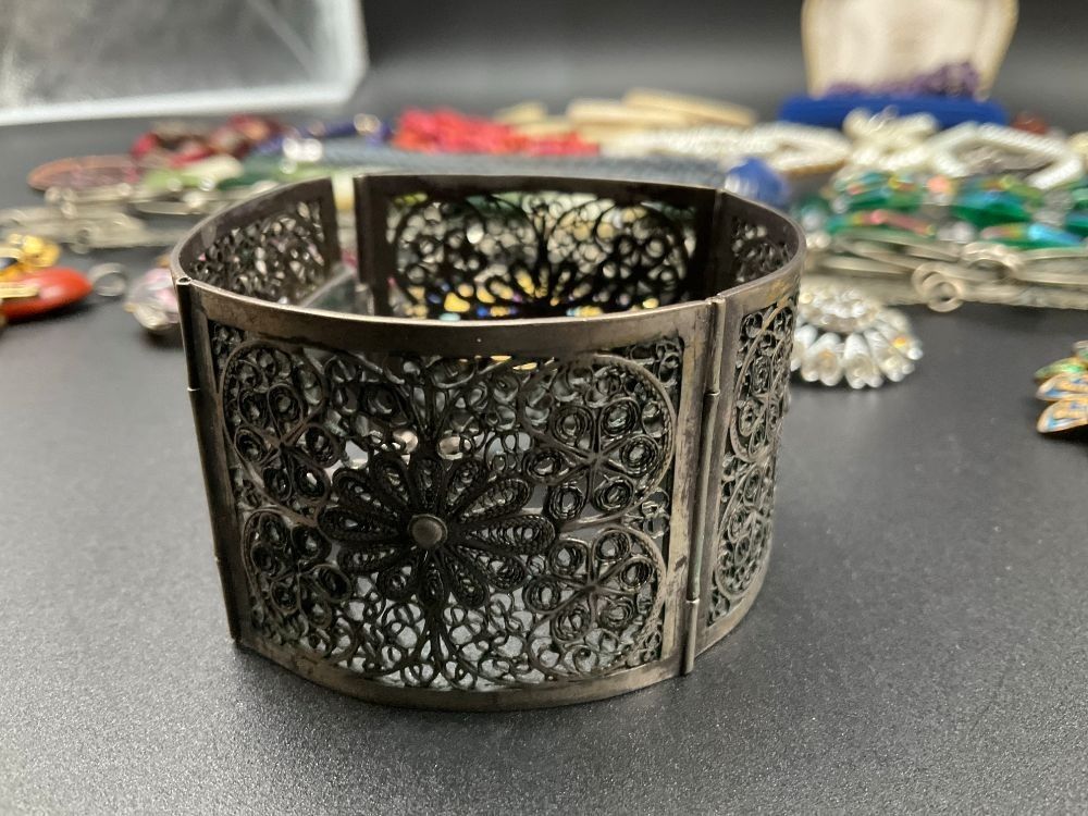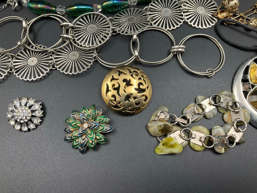 Set of costume jewellery including pearl necklaces, various bracelets, brooches and pendants...