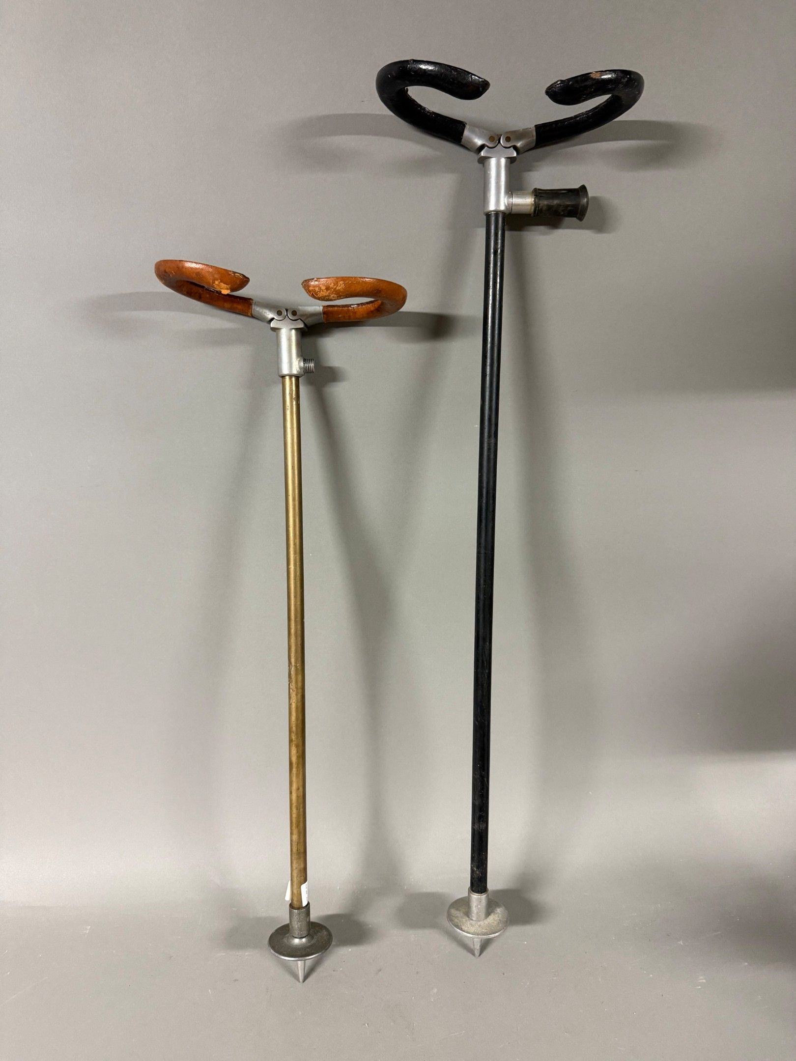 LOT: 2 walking sticks. H: 85 and 100cm.