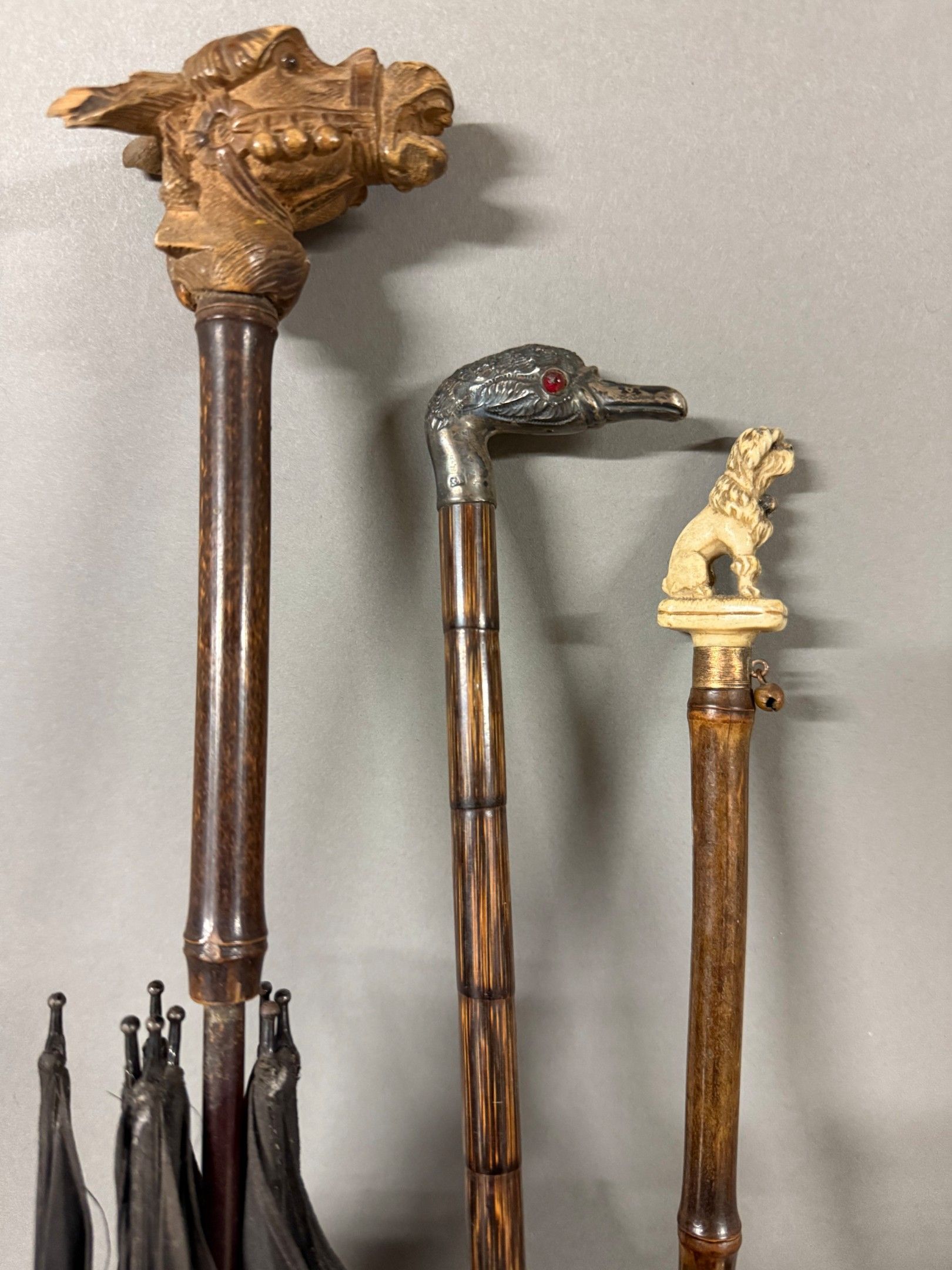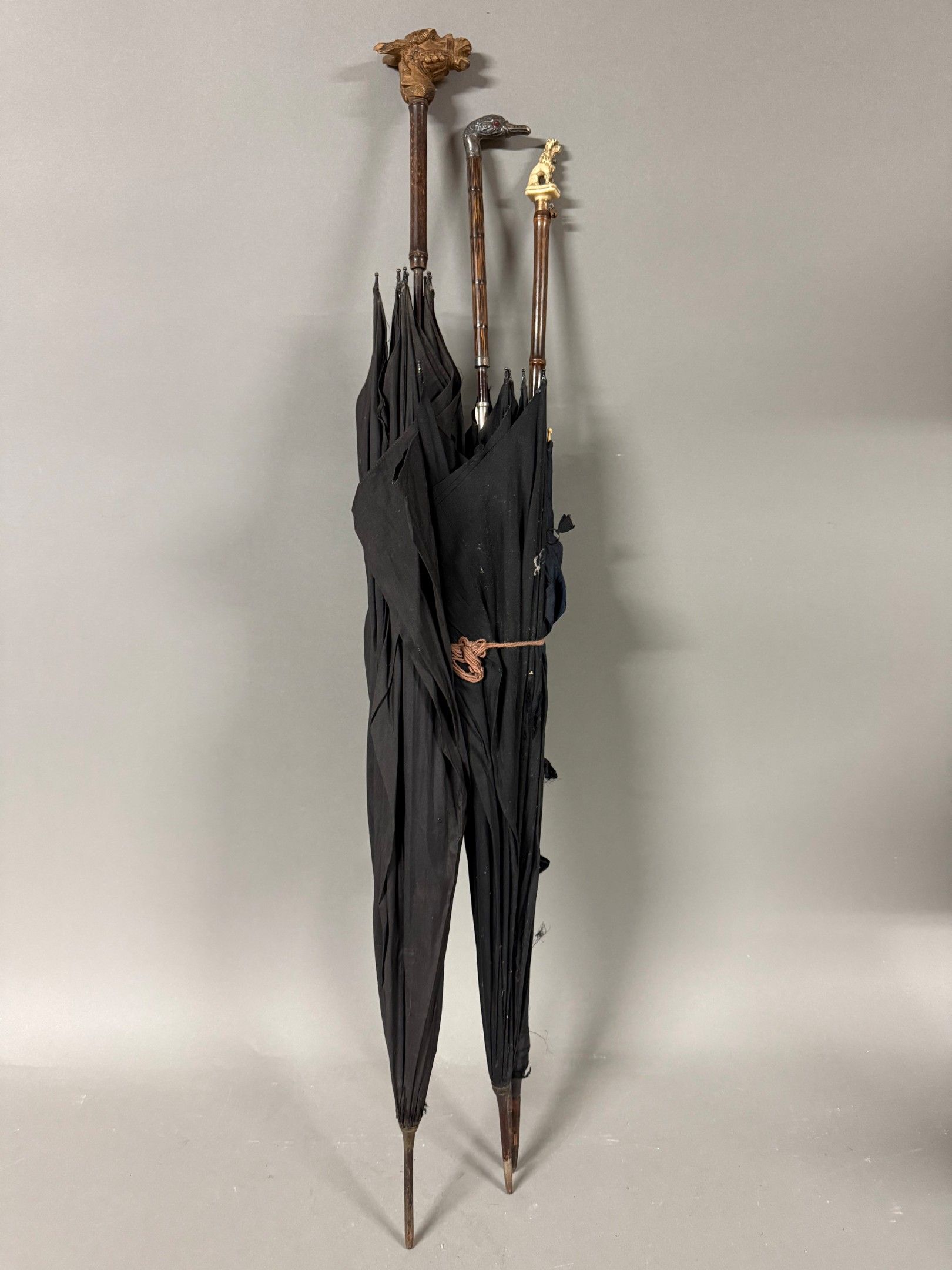 LOT : 3 parasols. Height: 85 cm. Fabric heavily worn and torn.