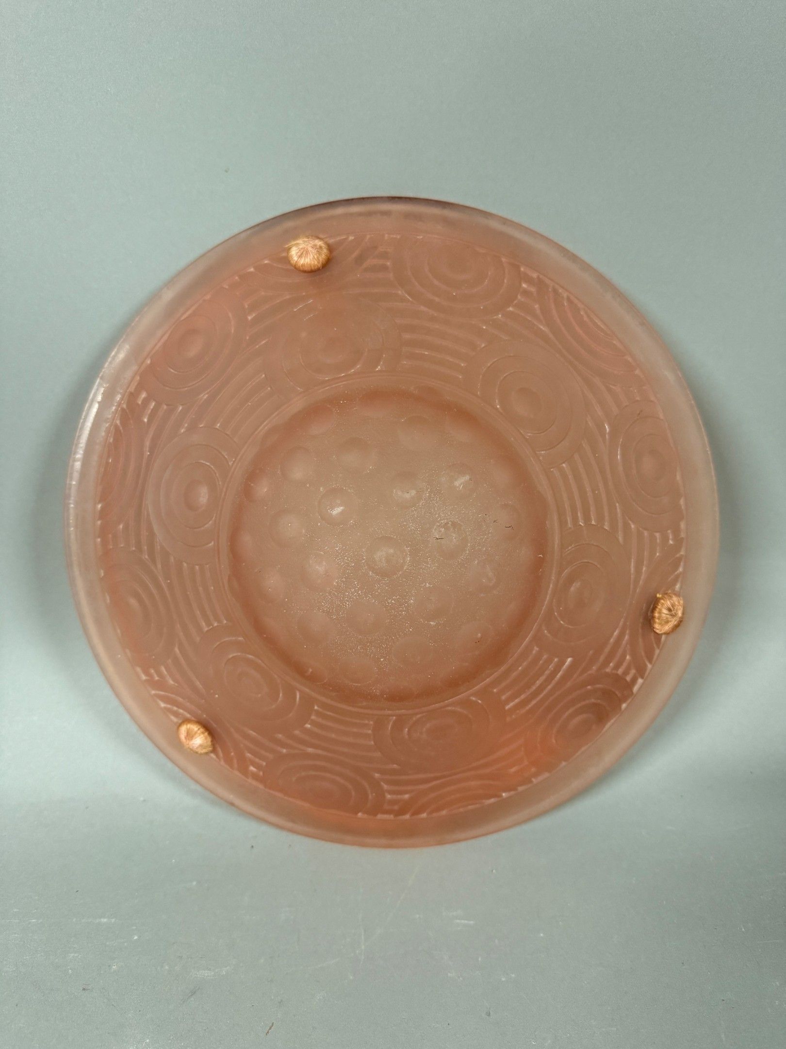 SUSPENSION in moulded glass with geometric decoration. Art Deco style. D35 cm.