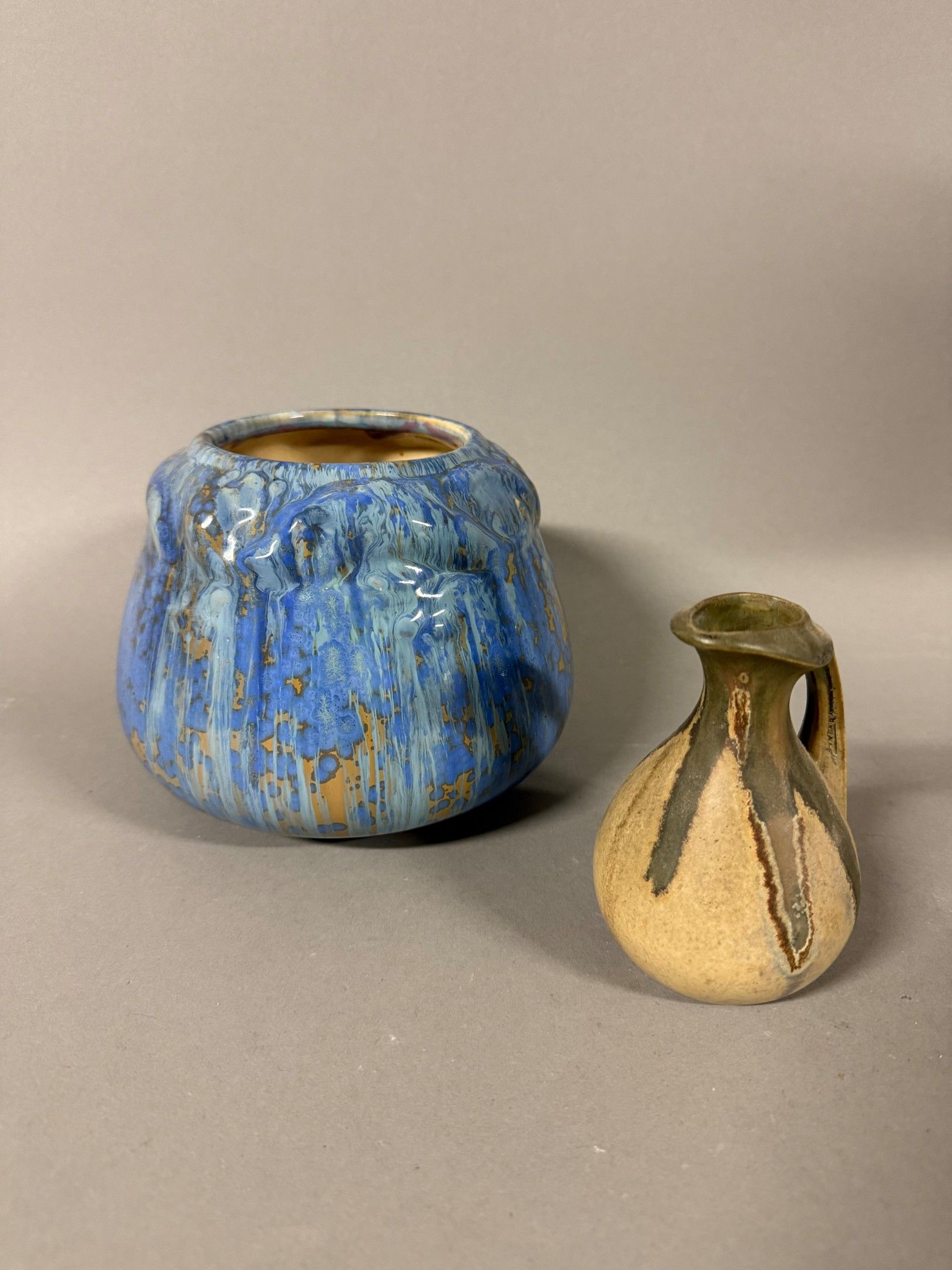 PIERREFOND . Blue glaze vase. Height 14 cm. One pitcher