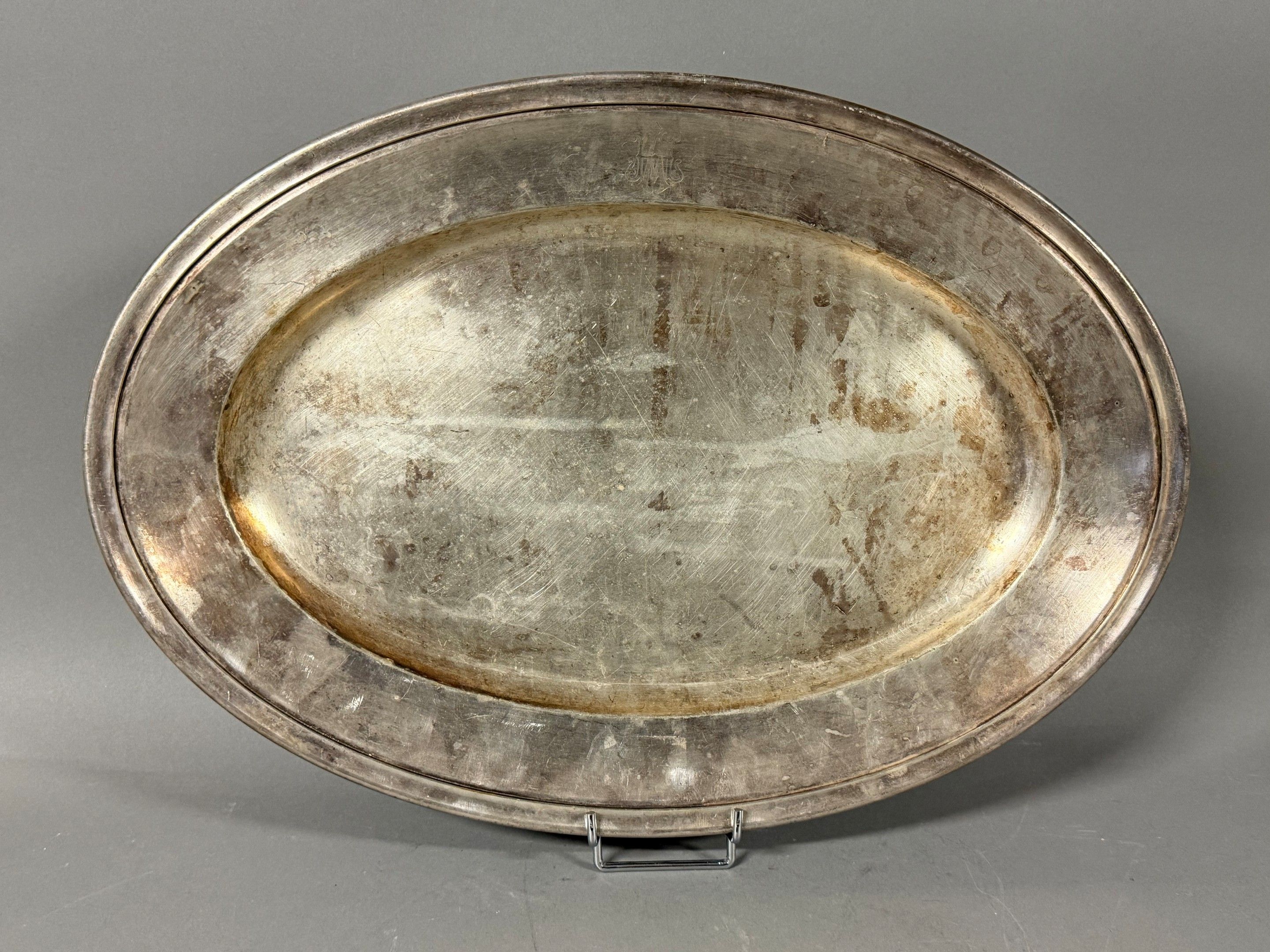 CHRISTOFLE. Oval silver plated dish. Figured HM. 55 x 38 cm. Wear from use.