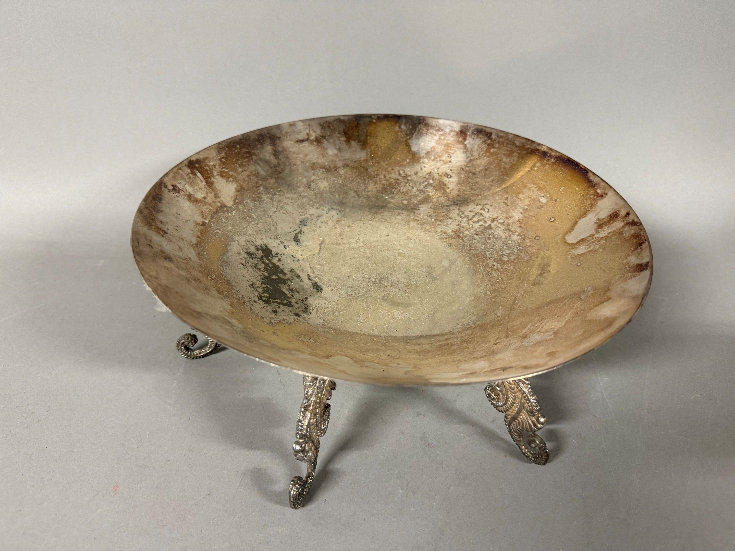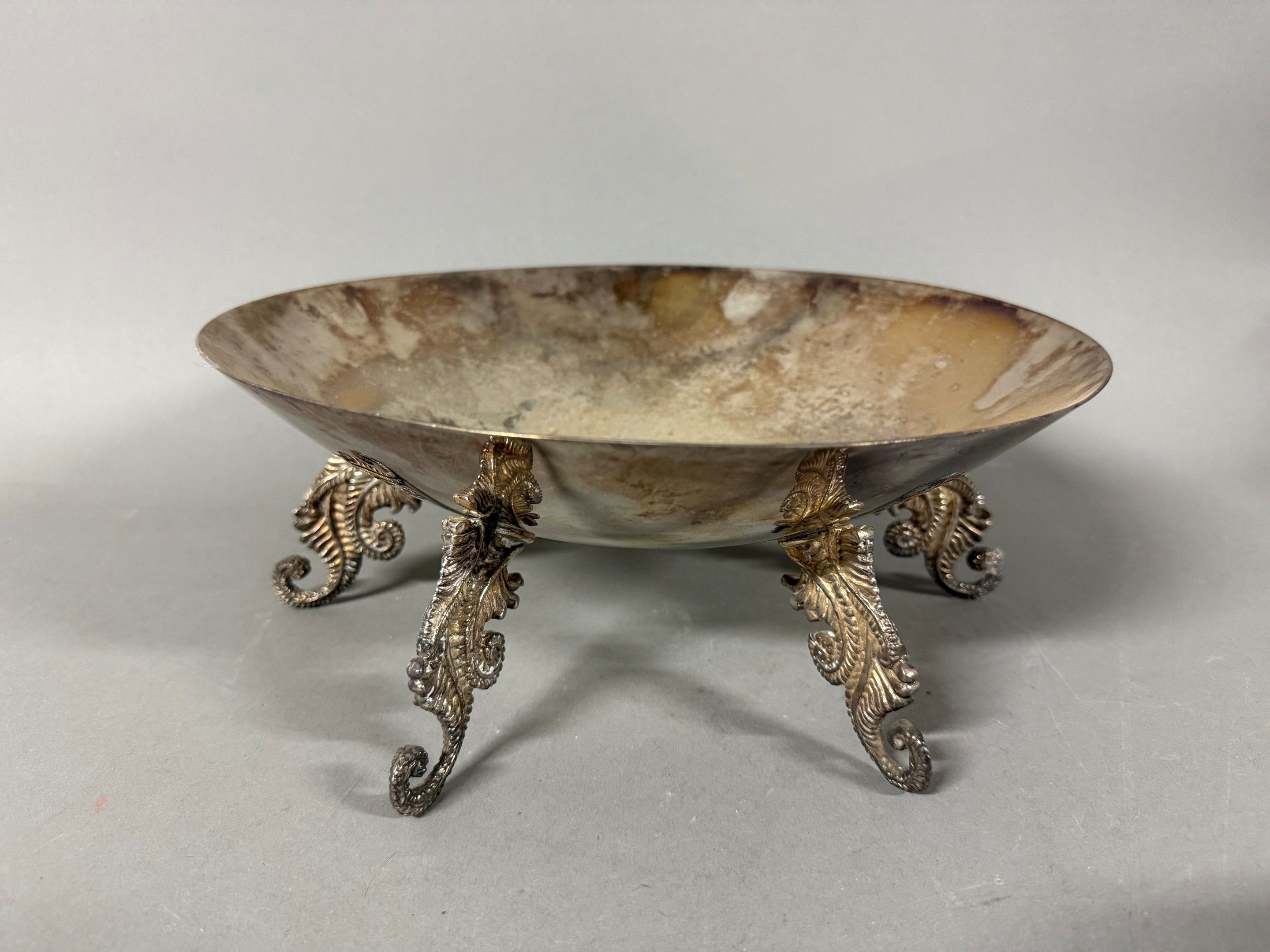 ROUX-MARQUIA. Hollow circular silver-plated metal display stand. It stands on 6 feet featuring foliage. 12.5 x 31.5 cm. Wear from use.