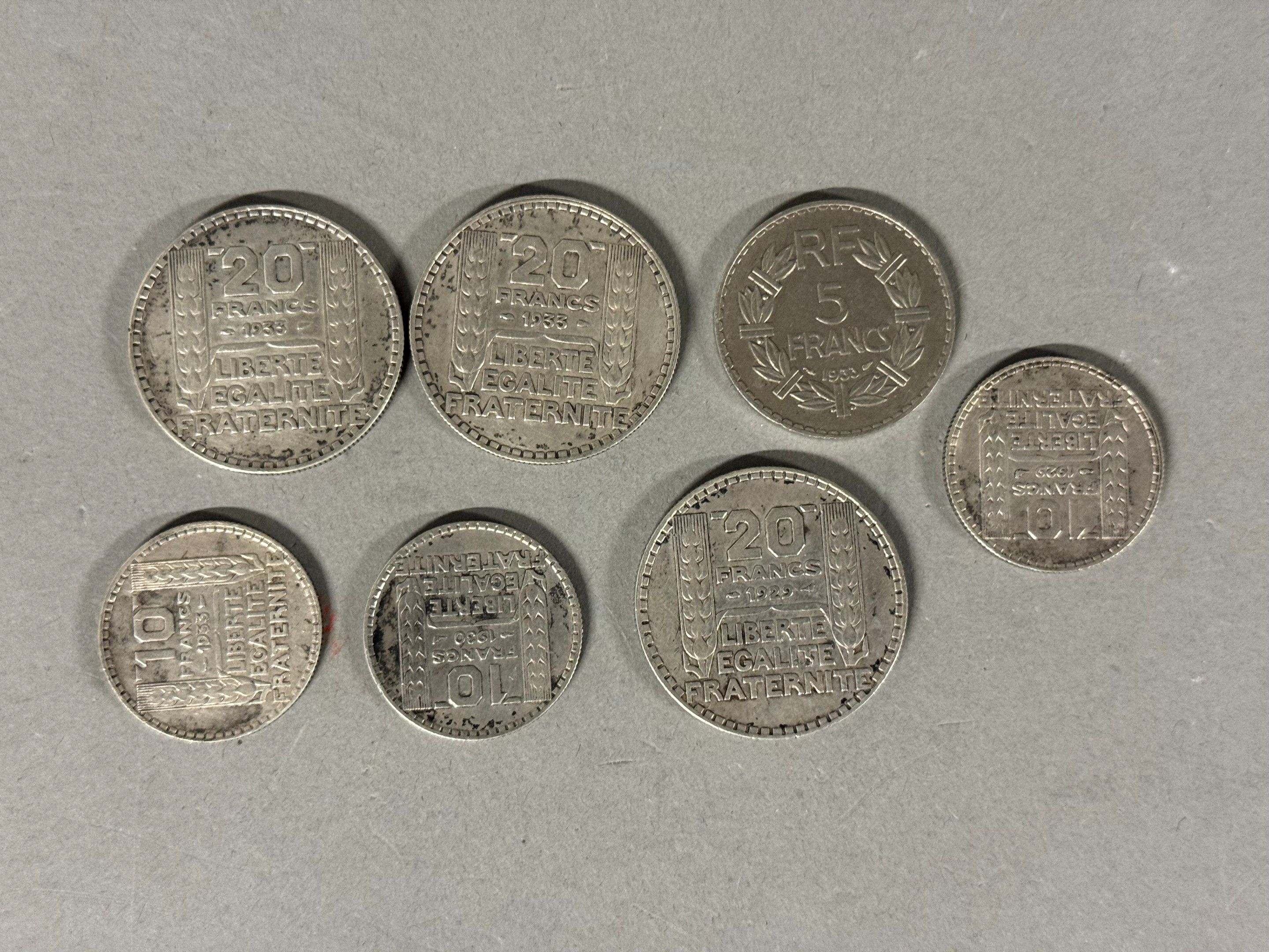 SILVER. 3 coins of 20 francs Turin (1929-1933-1933) - 3 coins Turin, 1930-1933-1933. Weight 89 grams. Attached is a 5 franc 1933 coin in cupronickel.