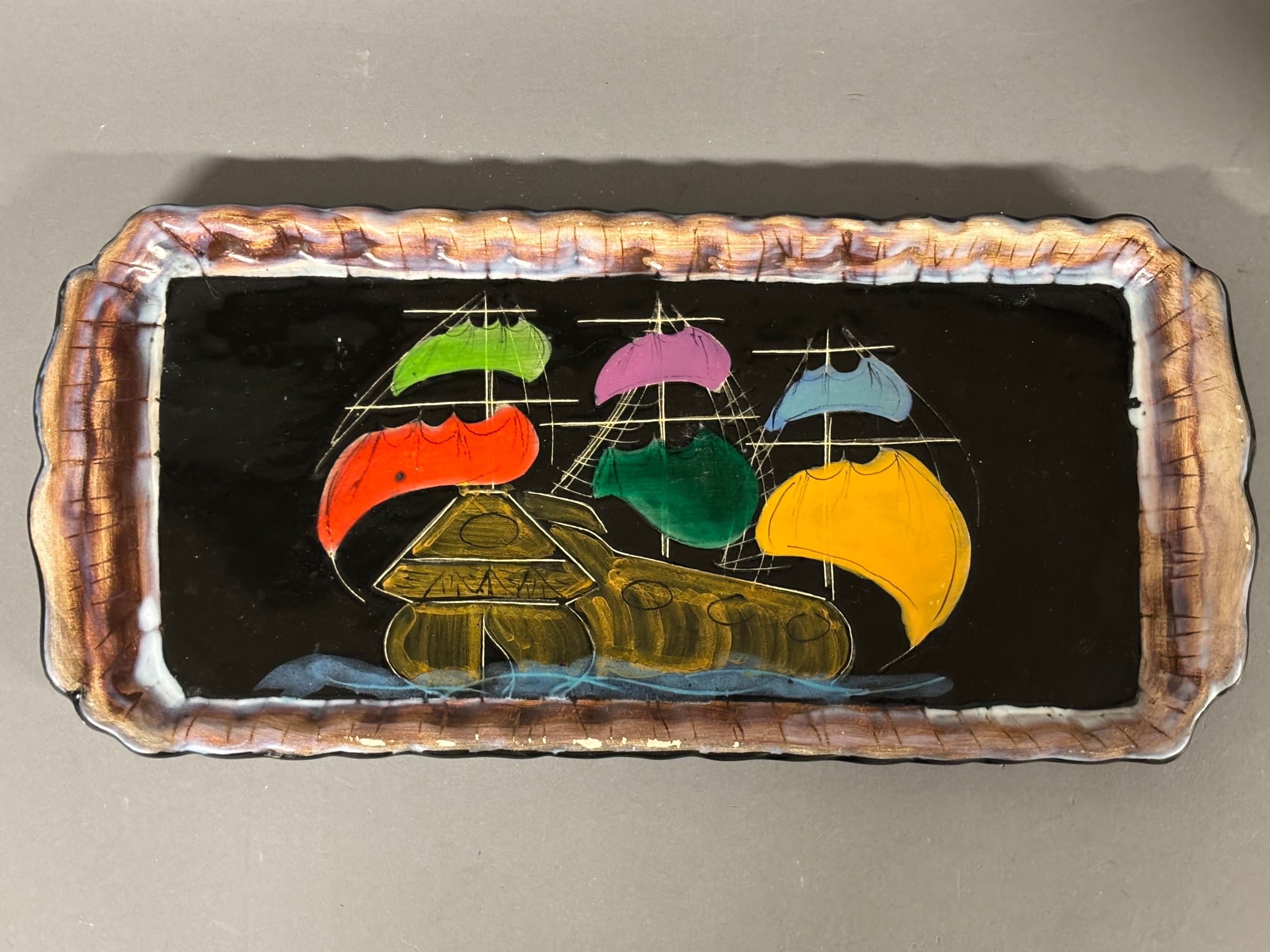 VALLAURIS CERENNES FONCK. Glazed earthenware cake dish. Signed below. L 39 x 18 cm