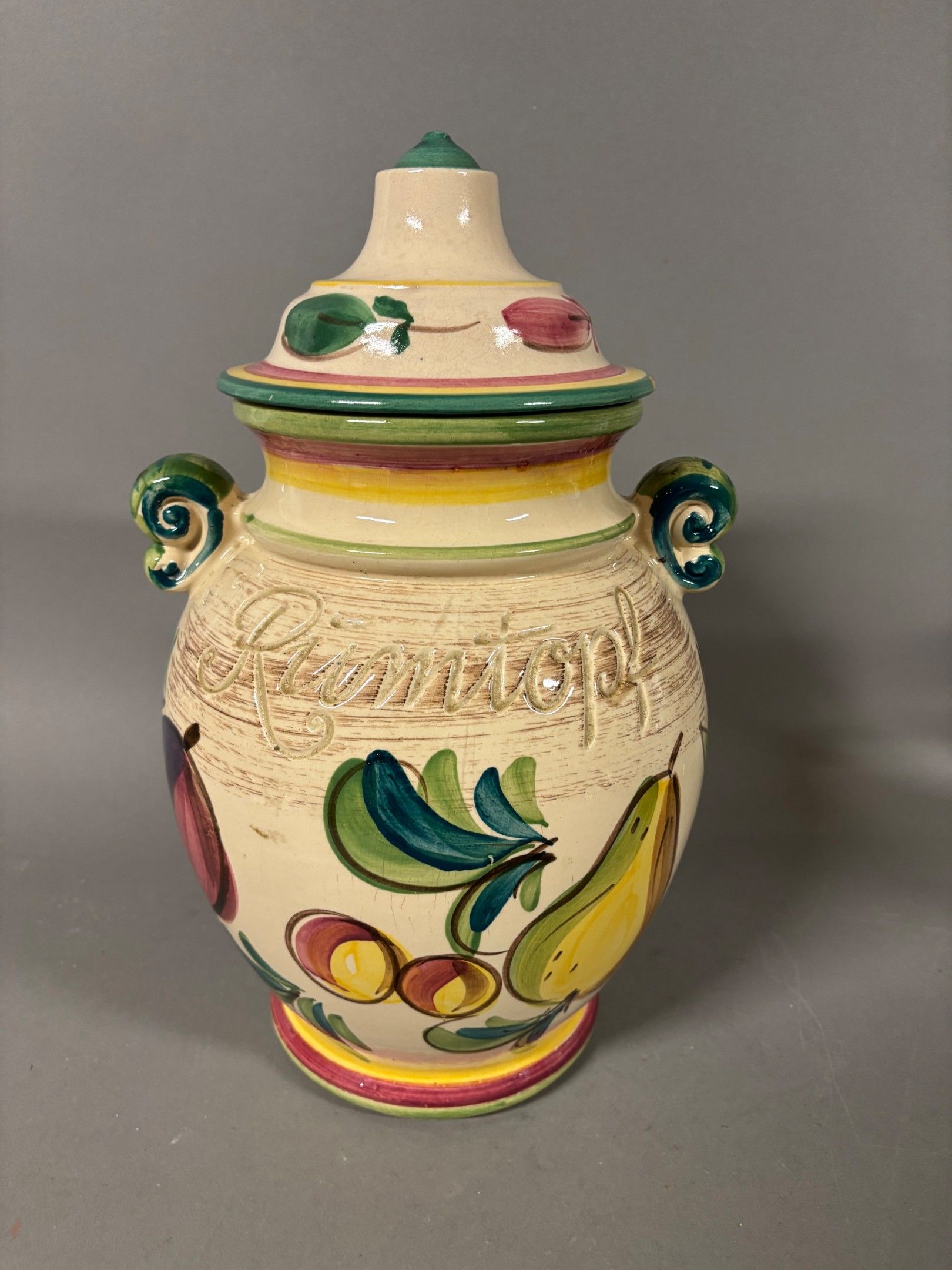 Polychrome glazed earthenware COVERED POT "Rumtopf" W.
