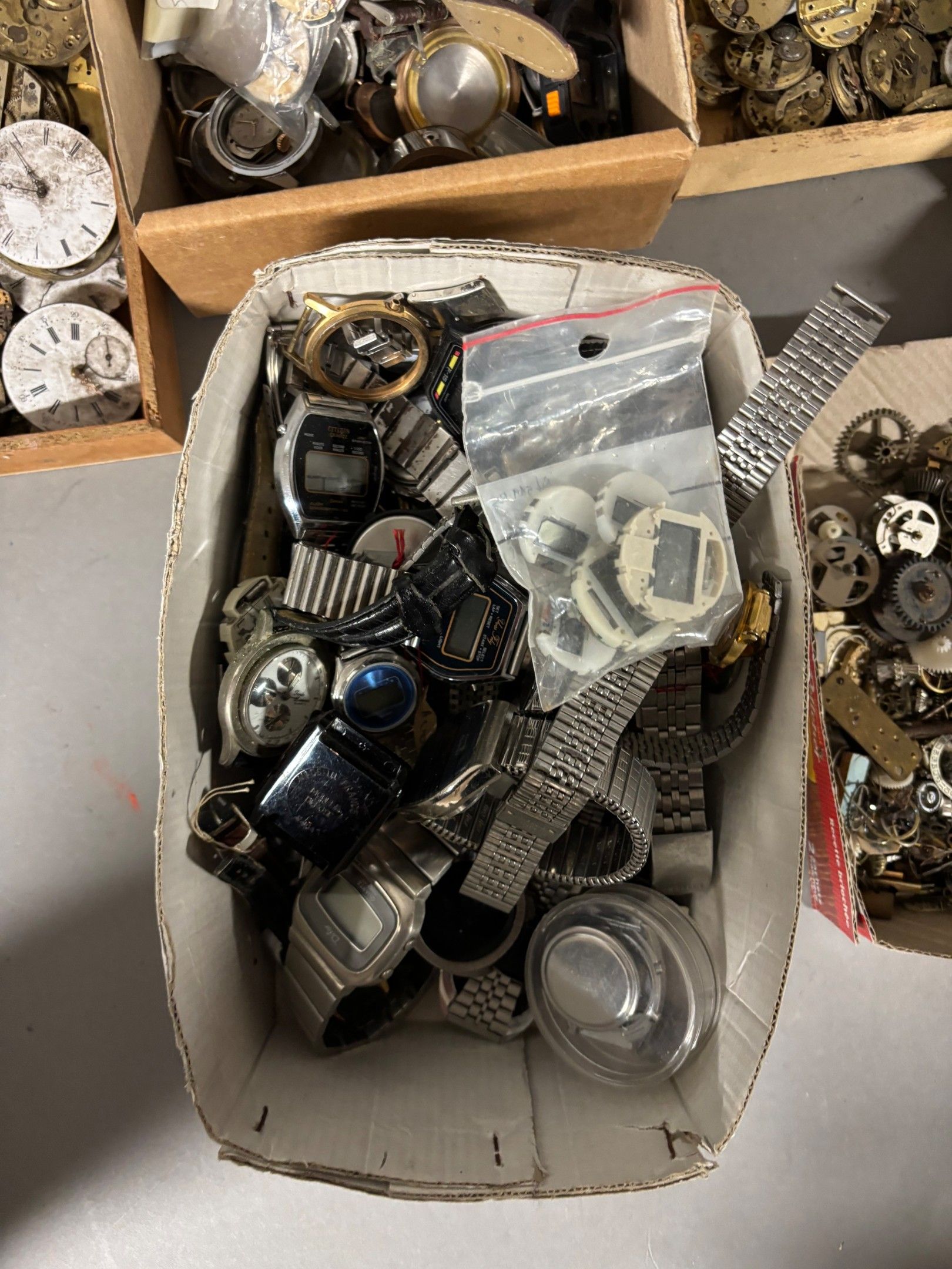 CLOCKWORKS. Important set of case mechanisms, bracelets. as is